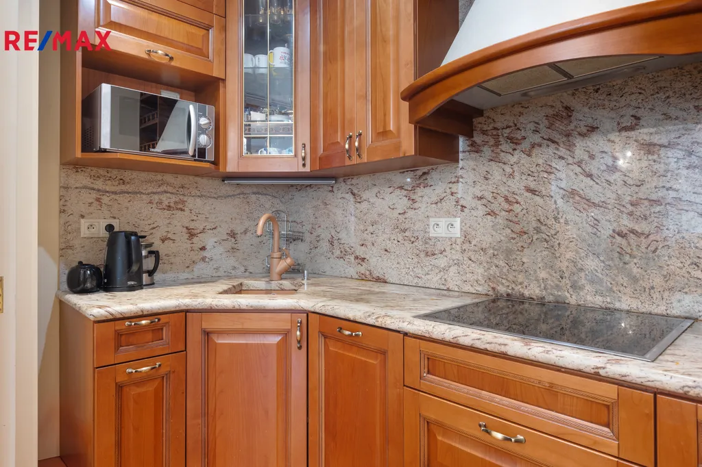 * Velký obývací pokoj s balkonem a moderní kuchyní včetně spotřebičů.