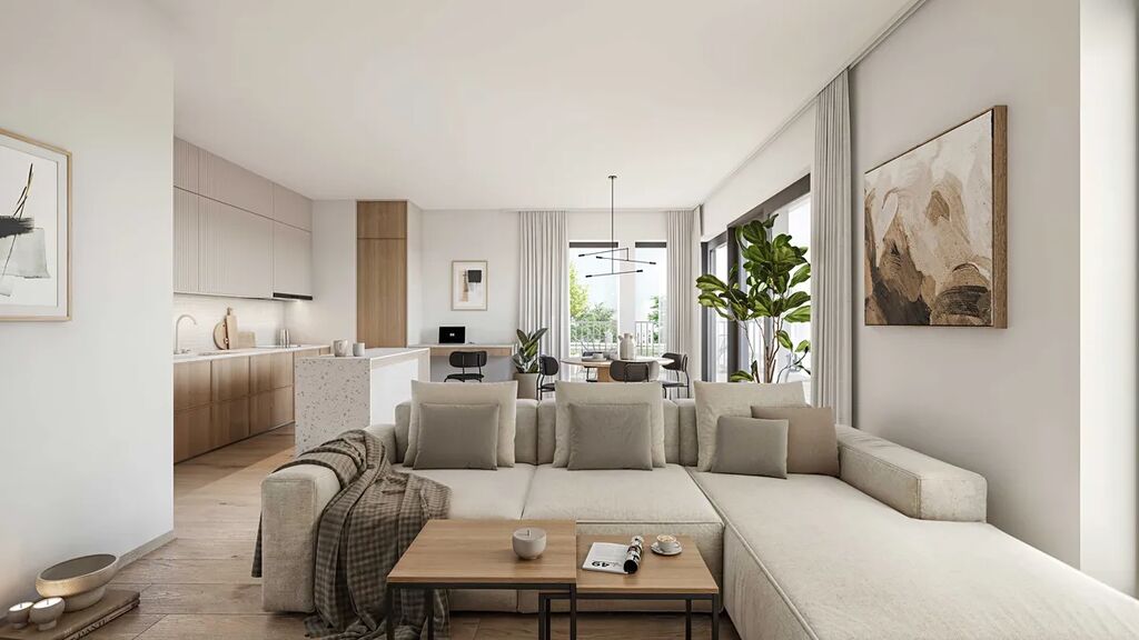 Podlahy jsou z lepeného vinylu, pod okny jsou umístěné foxstepy nebo podlahové konvektory pro pohodlné vytápění a v horkých letních dnech oceníte i předokenní žaluzie a ve vybraných jednotkách i přípravu na klimatizaci.