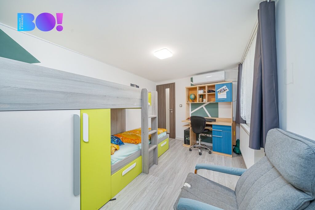 Dům prošel v roce 2022 kompletní rekonstrukcí, takže se můžete rovnou nastěhovat bez nutnosti dalších investic. Nabízí užitnou plochu cca 120 m² a stojí na pozemku o velikosti 388 m². Dispozice 4+1 je ideální pro rodinu – k dispozici je prostorný obývací pokoj, moderní kuchyně s vestavnými spotřebiči, tři samostatné ložnice, dvě koupelny, dvě toalety a praktické technické zázemí.