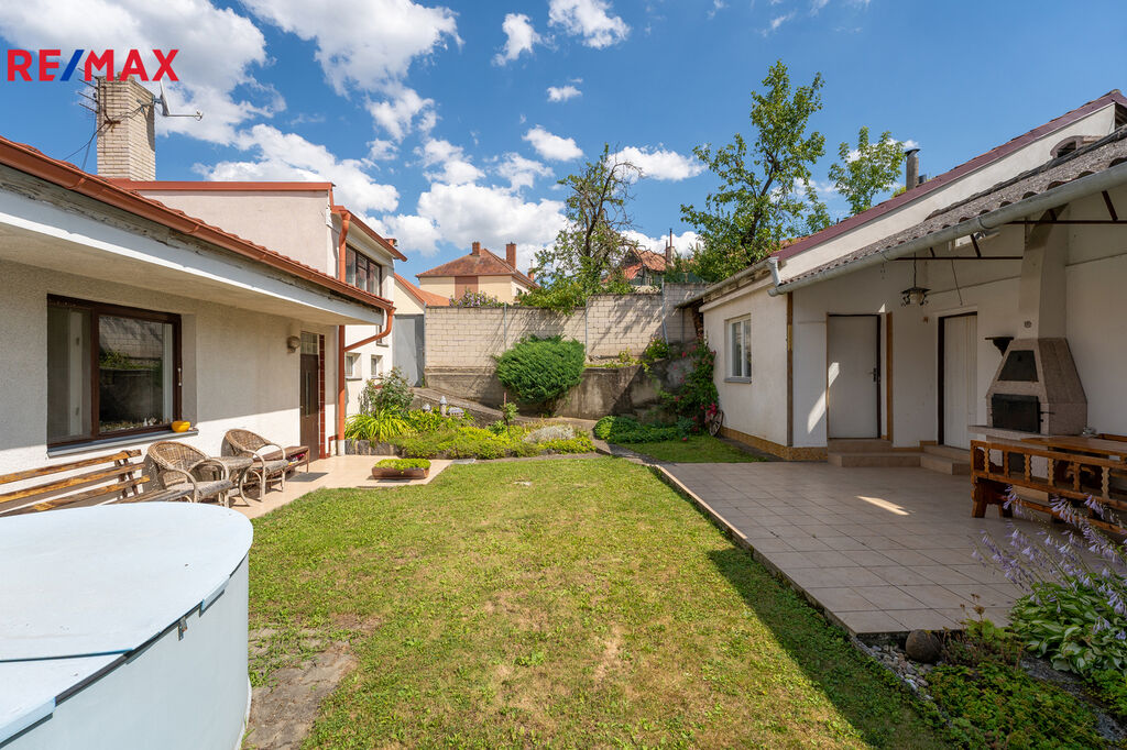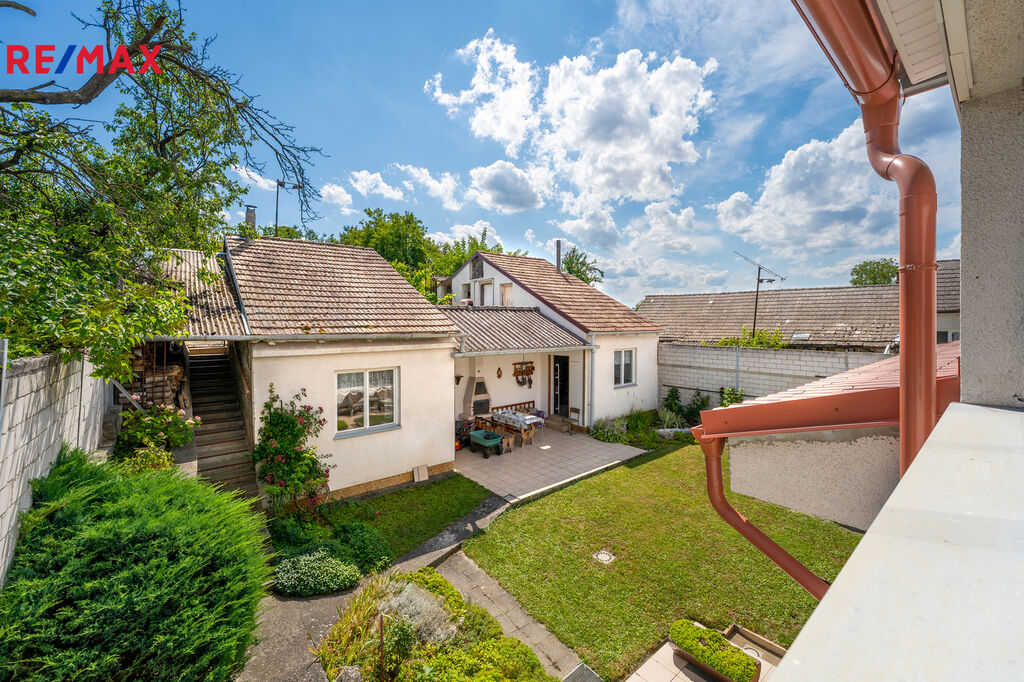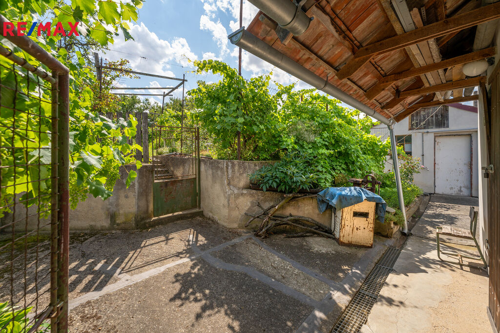 Ve výhradním zastoupení nabízíme k prodeji rodinný dům o dispozici 4+1 s garáží a pozemkem 792m2 (částečně vinohrad) v obci Věteřov okr. Hodonín. Rodinný dům je cihlový jedná se o rohový dům s pozemkem o výměře 792m2, kde se v zadní části pozemku nachází malý vinohrad. Zahrada je do mírného svažitého pozemku. RD prošel částečnou rekonstrukcí, zateplení fasády z přední části domu, plastové okna z předního pohledu ve zbývající části RD jsou okna původní. Rodinný dům je na pojen na veškeré IS, plyn, elektřina (po staru) místní rozvod vody a má i vlastní studnu (užitková s čerpadlem pro využití na zalívání zahrady). V roce 2019 proběhla rekonstrukce střechy, nová krytina a částečně vyměněny krovy, topení, nový plynový kotel, čištění studny proběhlo. RD dispozičně v přední části garáž na dálkově ovladatelné vrata, před nimi další parkovací stání. Vstup do domu chodbou, kde se po pravě straně nachází pokoj s orientací do ulice, dále vstup chodbou do kuchyně a dvou pokojů (ložnice a obytná místnost). Další místnost se nachází v horním patře s výhledem do vnitrobloku a s bočním vstupem na půdu. Koupelna s vanou a sprchovým koutem, původní stav. V technické místnosti v suterénu se nachází nový plynový kotel na vytápění domu, bojler a i kotel na tuhé paliva. Velmi nízké provozní náklady. Ve dvorním traktu se nachází venkovní posezení na terase s menším bazénem. Dále přiléhající stavba, která se nyní bude zapisovat po zaměření novým geometrickým plánem do KN. Jedná se o 4 místnosti, kde je letní kuchyň, sklep a další 2 technické místnosti s využitým prostorem i nad nimi, vstup ze zahrady a z vnitrobloku. Na pozemek je vstup jak z dvorního traktu, tak i z boku, kde se dá zajet na zahradu těžší technikou. RD se využíval pro rekreaci, ale je i určený k trvalému bydlení ( v KN veden jako rodinný dům). Dům zůstane vybavený. PENB, bude doložen ke Kupní smlouvě, energetická náročnost G je i v inzerci nyní nový štítek. Na domě nevázne žádné břemeno, lze financovat přes hypoteční úvěr, který Vám rádi zajistíme. Zadní stavba nekoresponduje s KN , právní stav narovnáme novým zaměřením GP a vložení do KN (pasportizace stavby). JIž nyní máme vypracovaný GP, který bude po novu 403m2 zastavěná plocha a nádvoří a parcela zahrada 792m2 (viz příloha foto). Nyní přednost klientům s vlastními zdroji, prozatím než se stav narovná (zadní stavba a přístřešek nad garáží a hlavní vchodem, který se nachází na pozemku obce) . Vše řešíme s obcí Věteřov. Více v RK, prohlídkové dny budou probíhat, vždy o víkendu. Více v RK rádi Vám sdělíme více info po telefonu či osobně na prohlídce. Uvolnění ihned po zapsání vlastnického práva, vybavení zůstává součástí prodeje. Obec Věteřov se nachází 30 km od Brna, dobrá dojezdnost v blízkosti Slavkov. Leží jihozápadně od Kyjova. V obci žije 536 obyvatel. Občanská vybavenost v obci. IS veškeré na domě, plyn, voda a elektřina.
