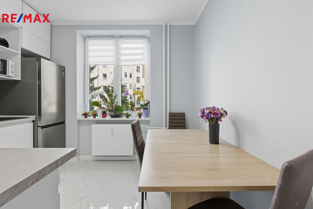 Dispozice bytu je prakticky řešena – prostorný obývací pokoj, samostatná kuchyně, ložnice a koupelna se sprchovým koutem. Díky rekonstrukci má byt moderní a světlý vzhled, je ihned připravený k nastěhování bez dalších investic. K bytu náleží také sklepní kóje.