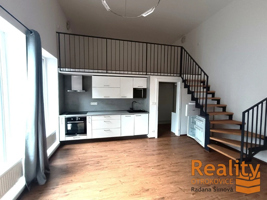 Nabízíme do nájmu loftový byt 2+kk, spodní část bytu má výměru 33m2 + loftové patro 10m2. Byt je ve 2. NP v novější stavbě bytového domu s výtahem v klidné části Malenovic. Moderní a velmi pěkně řešený byt, velikánská lodžie s orientací na jih. Ve spodní části bytu je koupelna se sprchovým koutem, společná s WC, pračka, v předsíni vestavná skříň se zrcadlem, botník, odkládací stěna, obytný prostor s kuchyňským koutem, linka, sklokeramická varná deska, el. trouba, myčka nádobí, chladnička, jinak není byt zařízený. Z obytného prostoru vede schodiště s dřevěnými nášlapy do loftového „patra“, kde je možno umístit pracovnu, postele, skříňky apod. Podlahy plovoucí, okna plastová. Parkování pouze pro nájemce domu. Volné ihned. Nájem je dlouhodobý pro pracující, nekuřáky bez domácích mazlíčků. Zálohy na energie pro 1 osobu 2.300,- Kč/měs.