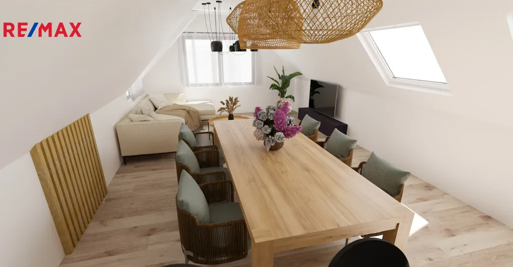 Byt se nachází v půdní vestavbě domu a disponuje novou střechou, novými okny a vlastním samostatným vstupem, což zajišťuje soukromí i komfort. V projektu je navržena dispozice 4+1, ale finální uspořádání si můžete navrhnout sami – a vytvořit si tak domov přesně na míru.