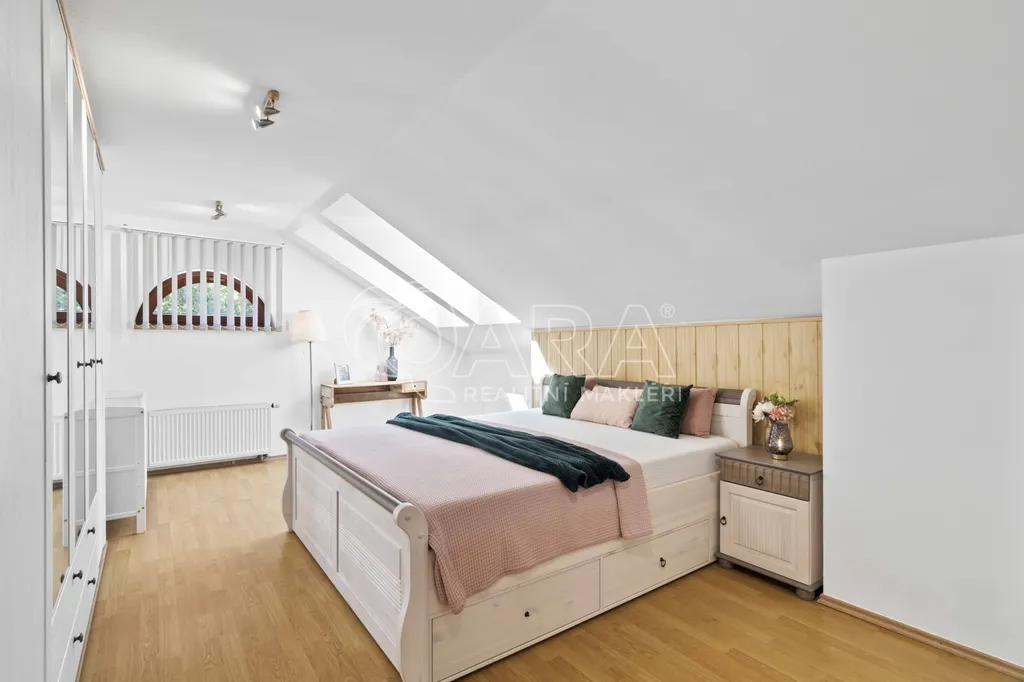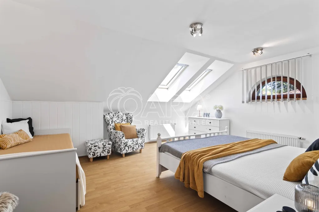 Uvnitř vás čeká pět samostatných a prostorných ložnic, více než šedesátimetrový obývací pokoj, rozdělený na klidovou a společenskou zónu s kulečníkovým stolem a krbem a v suterénu najdete ještě i fitness a společenskou místnost, kde se potkává rodina i přátelé.