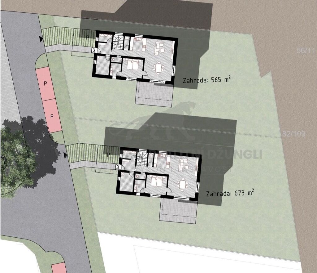 •	3x dvojdům s terasami (každý obsahuje 2x 5+kk)