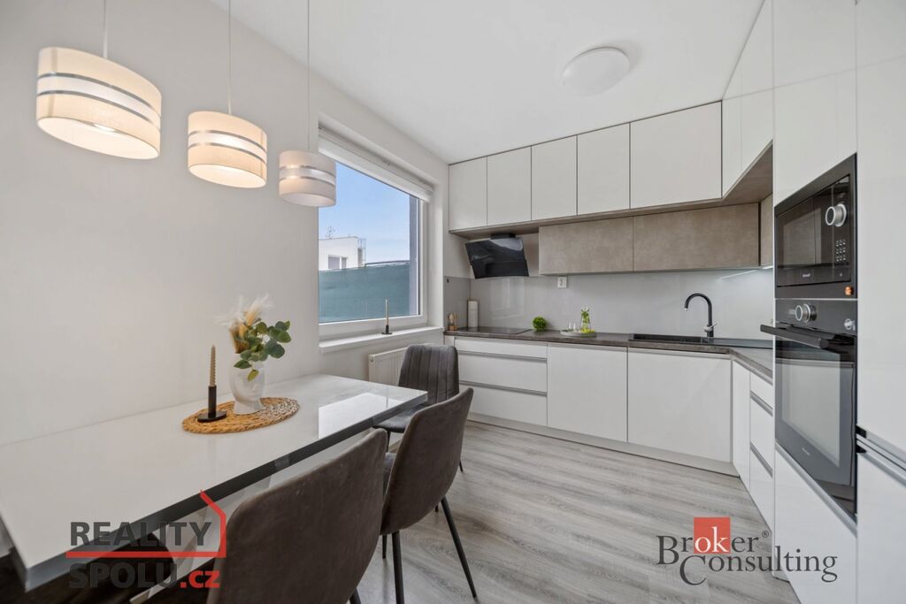 • Moderní kuchyň vybavená kvalitními spotřebiči a dostatkem úložného prostoru potěší každého, kdo rád vaří.