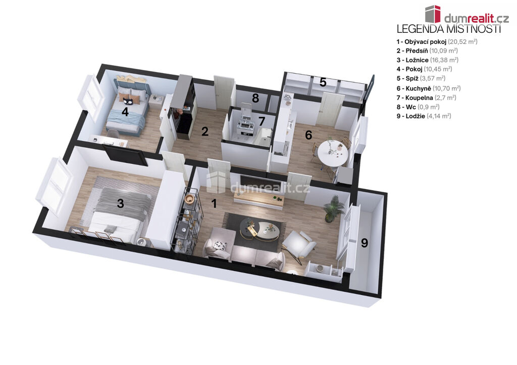 Jedná se o prostorný světlý byt s neprůchozími pokoji, samostatnou koupelnou s rohovou vanou a samostatným WC. U kuchyně je praktická komora, další komora je přímo vedle bytu na chodbě. Byt je ve 2.patře (3.NP). Z obývacího pokoje je vstup na lodžii s výhledy do zeleně a na les-Brdské Hřebeny. K bytu patří garáž, 2x sklep, parkování je možné ještě před domem. Dům má novou střechu včetně okapů. Stavba je z r. 1990 z tvárnic a cihel. Dům je napojen na vlastní studnu, na obecní kanalizaci. Byt je vytápěn samostatným kotlem na tuhá paliva s rozvody do radiátorů, možno vyřešit plynovým kotlem. Do domu je přiveden plyn. V r. 2020 byly vyměněny okna za plastová. Podlahová plocha bytu je 75 m², pokoj 1. 14 m², pokoj 2. 20 m², pokoj 3. 16 m², kuchyně 14 m², koupelna 2,7 m², lodžie má 4 m², dále pak sklepy a komora. Byt se nachází v centru obce, nedaleko autobusové zastávky, obchodu Coop, kavárny, zámeckého areálu Všerad, kde je restaurace, minipivovar, sportovní zázemí hřiště, tenisových kurtů, minigolfu. V obci působí i zájmové kroužky pro děti i dospělé. V obci je MŠ. Dopravní spojení s okolím zajišťují autobusy a vlak směr Zadní Třebaň-Lochovice. Na dálnici D5 exit 18 do Berouna je to 15 km (13 minut), do Zdic exit 28 je to 13,5 km (14 minut), na Dobříš D4 18 km (20 minut). Byt je možné koupit na hypoteční úvěr, který vám pomůžeme zajistit. Více informací u makléře M. Kareše Ev. číslo: 652478.