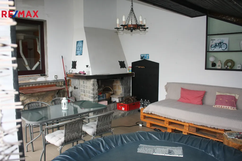 Dům se nachází na oploceném pozemku se zahradou a příjezdem po asfaltové komunikaci. Po příchodu k domu vás přivítá zastřešená prostorná pergola s venkovním posezením a krbem, ideální pro posezení s rodinou a přáteli, jejíž součástí je uzavřený prostor pro zahradní potřeby a nářadí. V přízemí domu se nachází prostorný obývací pokoj a jídelna s kuchyňským koutem, předsíň, koupelna, WC a technická místnost. V podkroví jsou dvě ložnice a druhá koupelna s WC, na míru dělané vestavné skříně s velkým prostorem, které poskytují dostatek prostoru pro rodinu. Součástí domu je velká garáž s montážní jámou a sklepem se třemi samostatnými místnostmi, ideální pro kutily nebo automobilové nadšence. Za garáží se nachází samostatná kancelář a pokoj pro hosty – perfektní pro práci z domova nebo pohodlné ubytování návštěv.