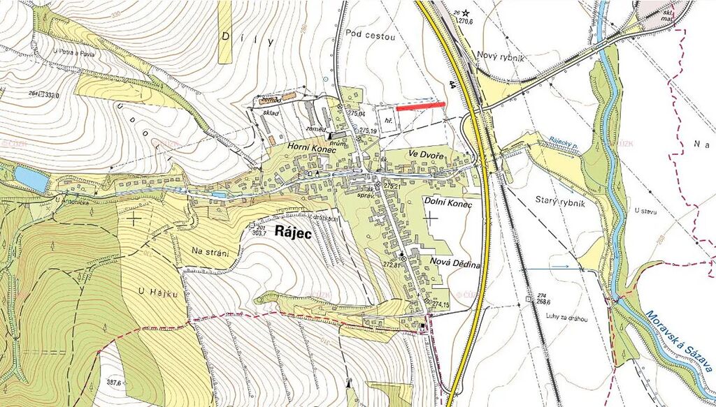 Pozemek se nachází severovýchodně od centra obce Rájec a celou svou plochou leží ve stavebním území. V územním plánu obce je vymezena plocha pro smíšenou výroby. Možná je zde výstavba pro výrobní a podnikatelskou činnost, skladování, podnikovou administrativou, vzorkové prodejny a jiné.