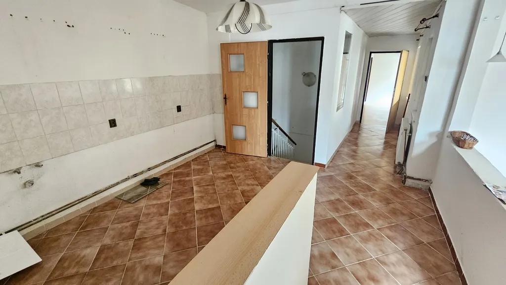 V patře je umístěna bytová jednotka o dispozici 4+kk se dvěma koupelnami a toaletami. Do tohoto podlaží je možné vstoupit buď přímo z přízemí, nebo samostatným vchodem po schodišti. Nad bytem se nachází podkroví, které po rekonstrukci nabízí možnost vybudování dalšího obytného prostoru. Součástí domu je také zastřešený balkon orientovaný do dvora. Dům je částečně podsklepený.