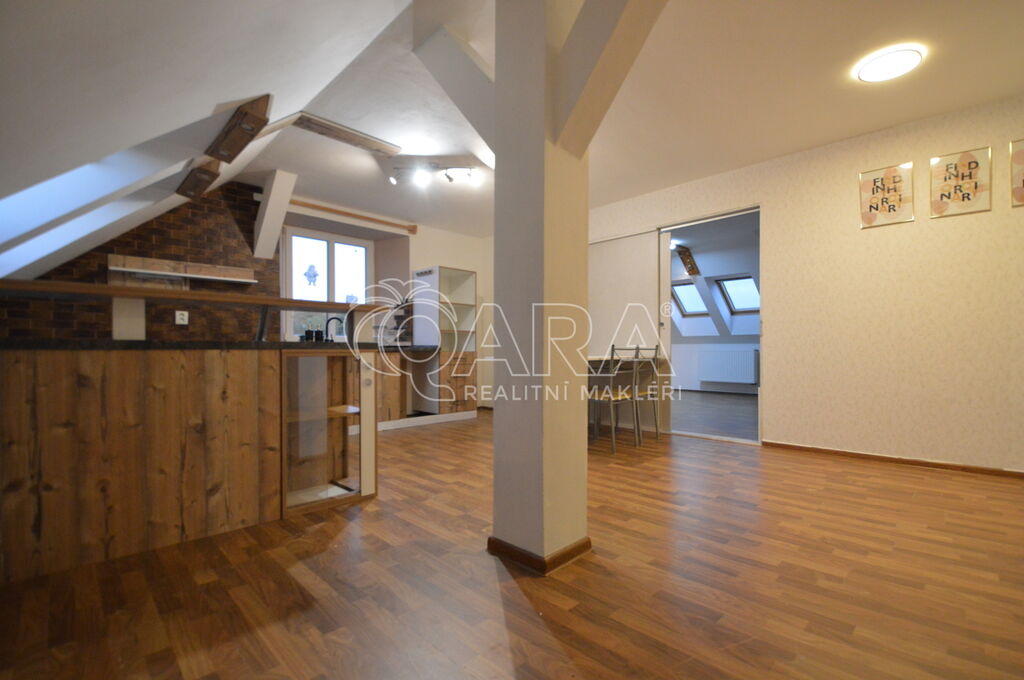 Dlouhodobý pronájem světlého a hezky řešeného bytu 2+1 o velikosti 90 m², který se nachází v posledním patře kompletně zrekonstruovaného domu na adrese Vídeňská 383 v Nové Bystřici.