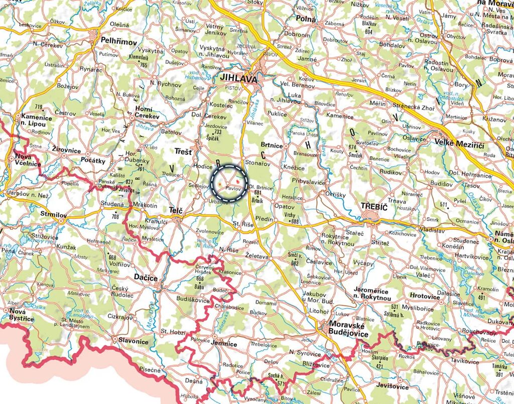 Lokalita Pavlov u Stonařova leží v okrese Jihlava v Kraji Vysočina, jen 11 km severovýchodně od historického města Telč, v klidné zemědělské krajině.