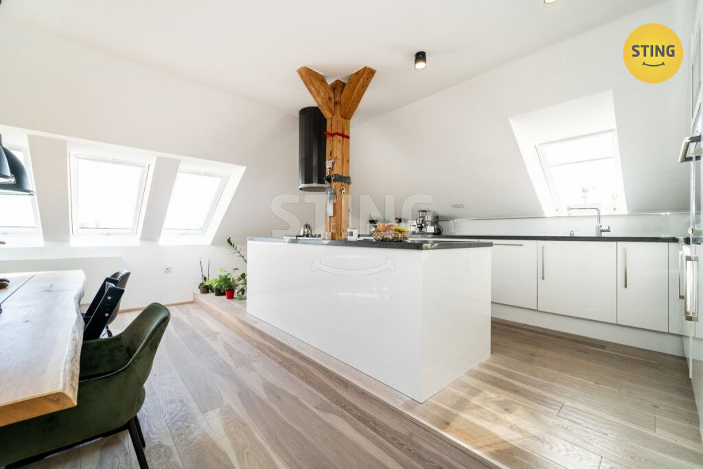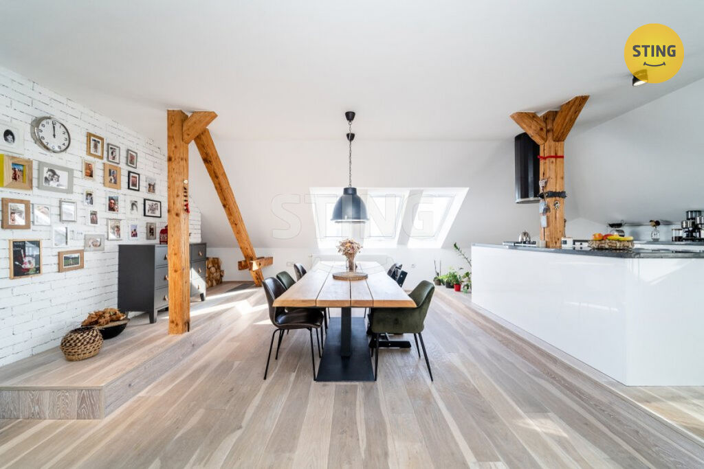 Nabízíme moderní podkrovní byt o vel. 4KK, ul. Porubská, Ostrava Poruba. Byt se nachází v 7.NP/7.NP, v cihlové zástavbě, v atraktivní části Poruby. Byt disponuje úžasným otevřeným prostorem, který je dřevěnými trámy a cihlovou stěnou rozdělen na zázemí kuchyňské (kuchyňská linka s ostrůvkem v bílém lesku na míru se spotřebiči: myčka, trouba, mikrovlnka, plynový sporák, digestoř, zabudovaná lednice, dostatečné množství úložného i pracovního místa), jídelní (designový rodinný stůl, pohodlné posezení i pro vícečlennou rodinu), obývací (prostor na sedačku, televizi). Ložnice a dětský pokoj je zvlášť, individuální vstup do těchto pokojů zajišťuje soukromí každého člena rodiny. Nápaditou rekonstrukcí majitel vyřešil i úložný prostor, skříně na míru, v bílém lesku, bonusem jsou dvě šatny. Koupelna - designové obklady, dlažba, vana, WC zn. GRÖHE (druhé WC stejné značky, vstup zvlášť). Byt nabízí i jedinečný prostor s velkými střešními okny - prosklené atrium, kde je možnost dalšího pokoje, pracovny či místo pro odpočinek. V dětském i obývacím pokoji zabudována klimatizace, na podlaze položena dřevěná podlaha zn. KÄHRS. Kondenzační plynový kotel zn. JUNKERS. Nízké náklady na bydlení 3.070,-Kč/3os (plocha bytu cca 180 m2). Při rekonstrukci majitel dbal na kvalitní provedení, špičkové materiály a vybavení. Byt nabízí komfortní bydlení i pro náročnější klientelu. Veškerá občanská vybavenost v místě adresy. Veškeré dotazy Vám ráda zodpovím telefonicky, či mailem. Těším se na prohlídku s Vámi. Do konce listopadu 2025 nabízíme prostřednictvím našeho partnera úrokové sazby od 4,29 % p.a. Více informací Vám sdělí náš specialista na prohlídce.