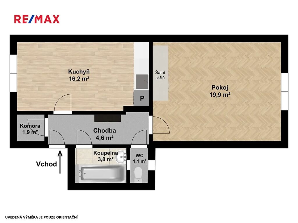 • ložnice o výměře 20 m² s velkou vestavnou skříní