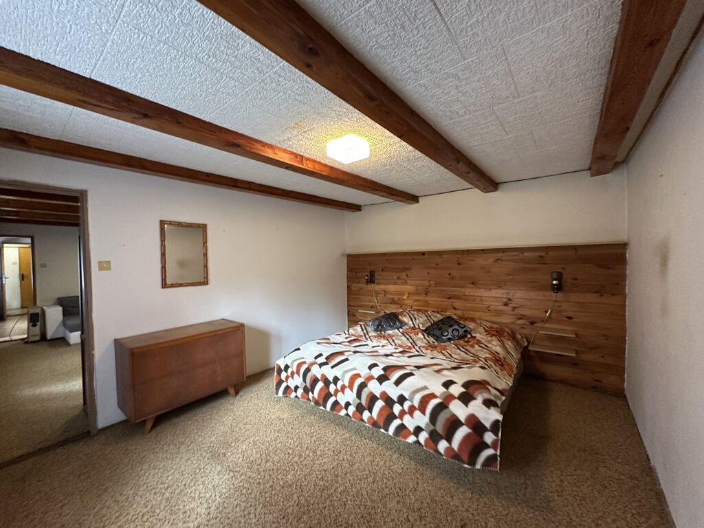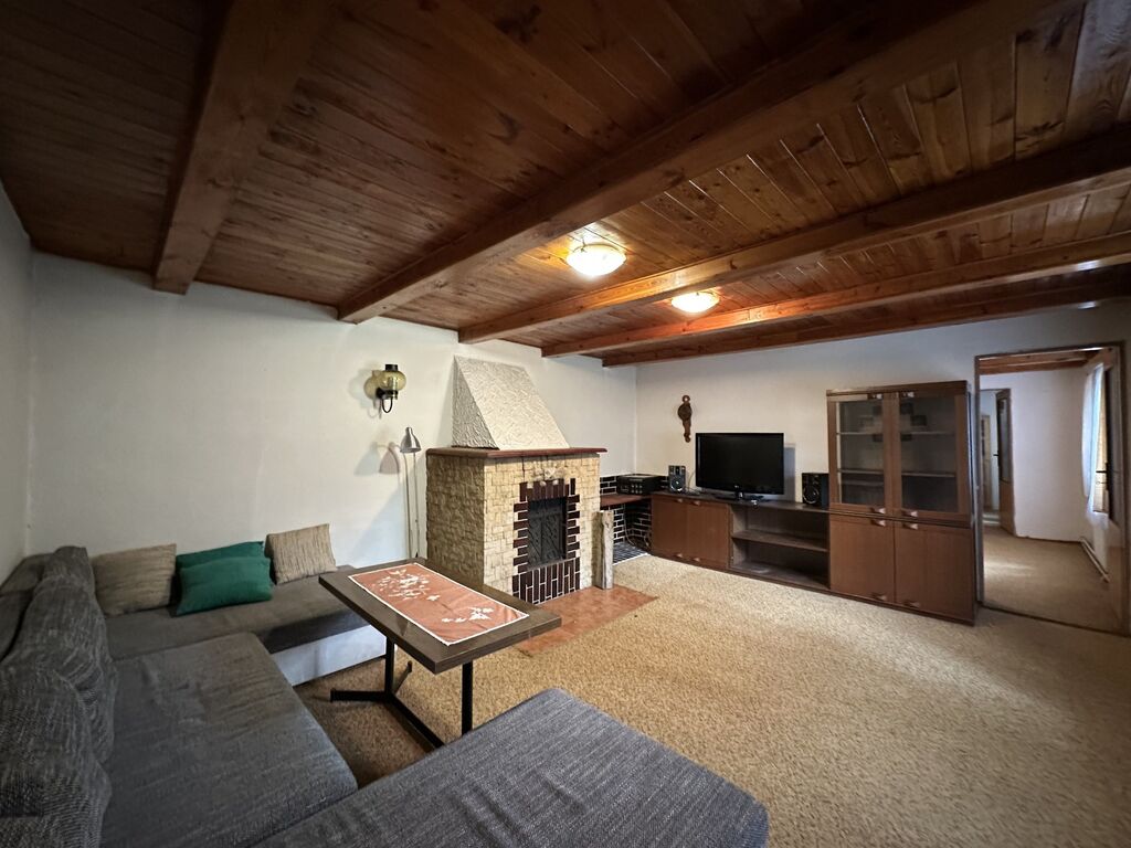 V horní části domu s užitnou plochou 112 m2 se nachází vstupní prostor (17,34 m2), pokoj (21,49 m2), následující pokoj (24,80 m2) a sklad (17,38 m2).