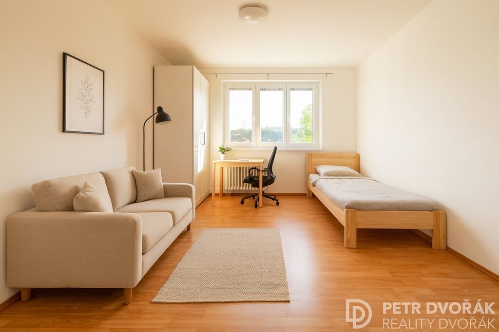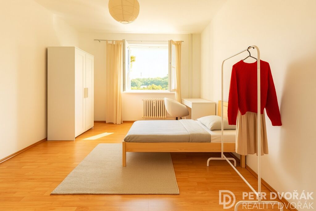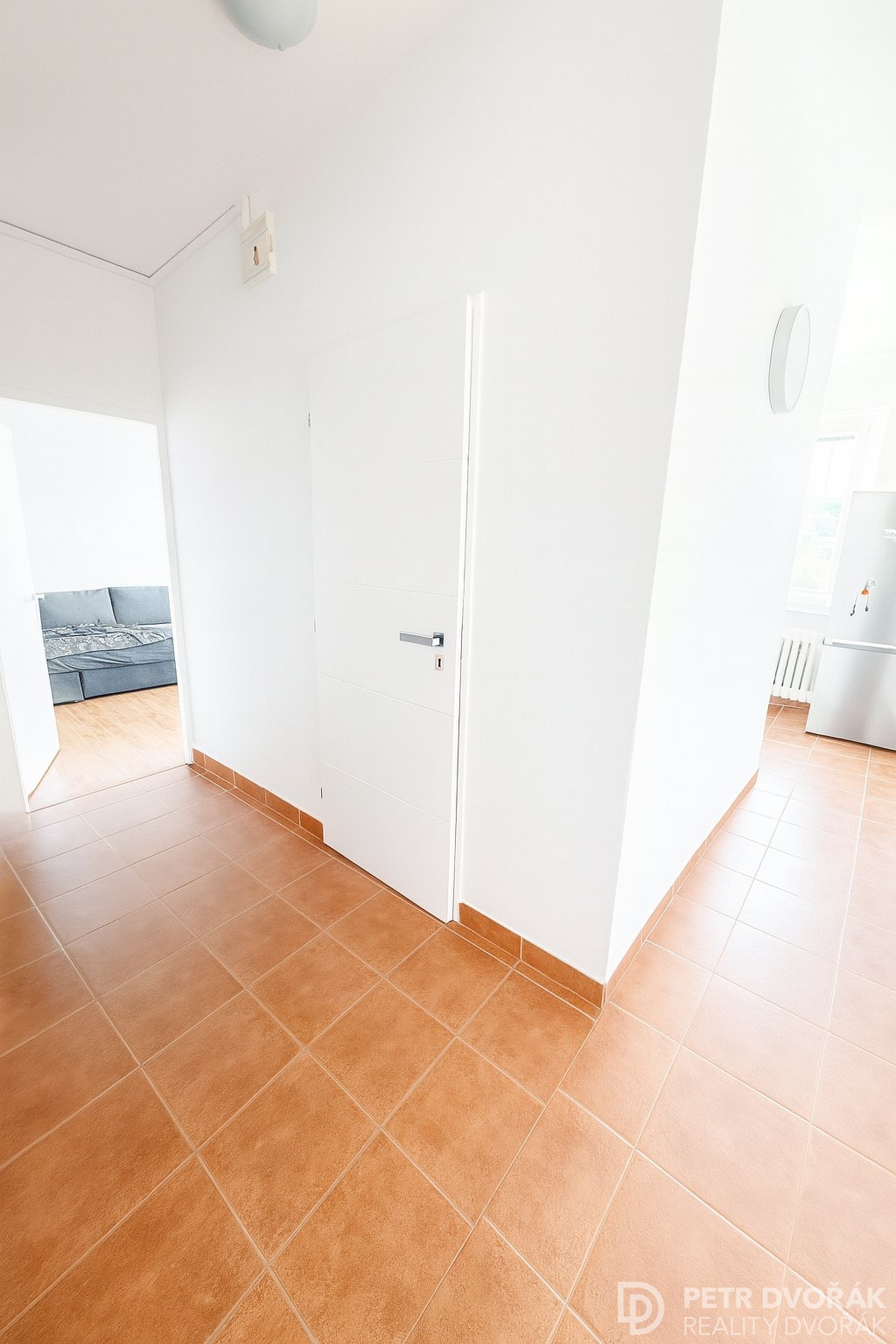 Byt nabízí předsíň s vestavěnými skříněmi, dva samostatné pokoje (cca 16 m²) orientované na jih, kuchyň s linkou a spotřebiči (sporák, digestoř, lednice s mrazákem, pračka) a koupelnu s vanou a toaletou. Interiér je vybaven plastovými okny se žaluziemi a sítěmi proti hmyzu, novými interiérovými i bezpečnostními vstupními dveřmi. Podlahy tvoří kombinace plovoucí podlahy a dlažby. K bytu náleží sklepní kóje (cca 1 m²) a k dispozici je také společná lodžie v mezipatře. Byt je připraven k okamžitému nastěhování.