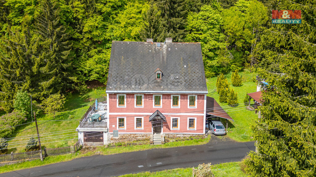 Chalupa se nachází v klidné obci Suchá u Jáchymova, obklopený krásnou přírodou, lyžařskými komplexy a lesy Krušných hor. Stavba má kamenný věnec a je dispozičně připravena jako dvougenerační, přičemž v přízemí se nachází mezonetový byt 4+1 a v patře jednotka 2+1. Spodní byt je téměř kompletně dokončen, zatímco horní byt čeká na dokončovací práce. V celém domě je nová elektroinstalace, vytápění zajišťuje elektrický kotel, případně kotel na uhlí typu oříšek se zásobníkem. Dále je ve spodním bytě funkční krb. Komíny mají dva průduchy, jsou frézované a pravidelně kontrolované. Ohřev vody zajišťuje kombinovaný bojler o objemu 200 litrů. Kotel splňuje emisní třídu 4. Dům je napojen na vlastní vodní zdroj – 300 l nádobu s čerpadlem. Ústřední topení je kompletně z mědi. V obývacím pokoji je protiradonová podlaha. Odpad je řešen septikem o objemu 4,5 m³, osazeným živými bakteriemi, plně kolaudován s kulatým razítkem a s pogumovaným vnitřkem.