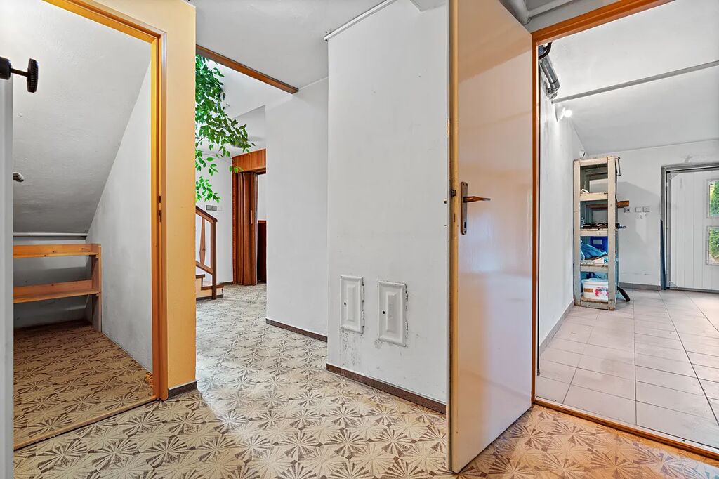1.NP. o CP cca78m² Vám nabízí: tři neprůchozí pokoje, kuchyni s jídelnou, koupelnu, samostatné WC a spíš.Dále zde naleznete půdní prostor, který slouží jen pro uskladnění věcí.