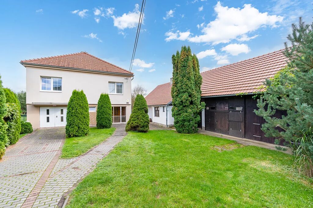Tento rodinný dům prošel částečnou rekonstrukcí: nová fasáda a zateplení, střešní krytina, plastové okna. Příjezdová cesta vede pohodlně až k domu.