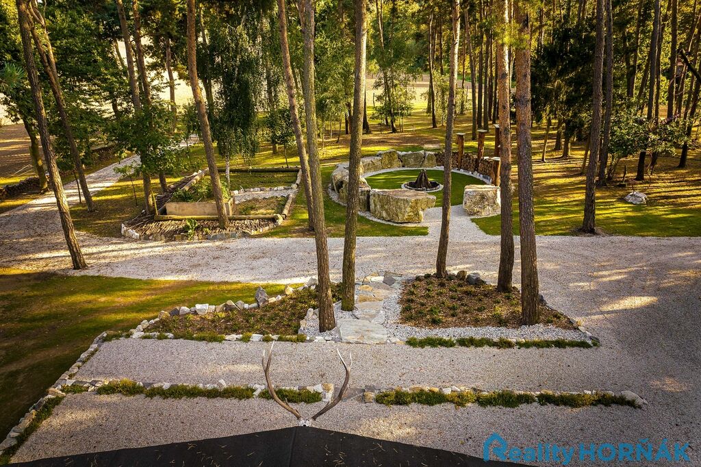 Soubor parcel o celkové výměře 17.169 m2 leží „na samotě“ mimo zastavěnou část obce a územním plánem je včleněn do kategorie F – plochy smíšené, obytné. Současný majitel pojal nabízené území jako výzvu k uměleckému pojednání. V naprostém souladu s přírodou zde vytvořil jedinečné místo, kde má každý kámen, každý strom, každý kousek dřeviny, či květeny své pečlivě vybrané místo. Unikátně zde vytvořil několik účelově odlišných zón, které však dohromady působí jako jedinečný, nezaměnitelný celek. Jen ten zbytek původní stavby jakoby sem nepatřil, jeho místo čeká na stavbu, která území dotvoří a novému majiteli poskytne netradiční, nadstandardní, úchvatné bydlení (na "první dobrou" přichází v úvahu například roubenka s velkými prosklenými plochami, ale třeba to nakonec bude úplně jinak :-)