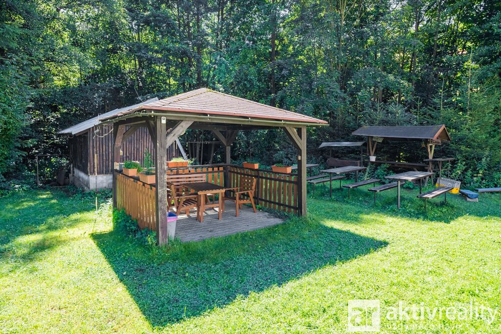 Přímo u domu je prostorné parkoviště a za domem je rovinatá zatravněná zahrada o výměře 1 114 m2, kde je altánek a gril. Nachází se v klidné části, ale zároveň v pěší dostupnosti všech služeb a jen 100 m od domu je lyžařský vlek. Vytápění je ústředním topením na tuhá paliva, je napojen na elektřinu, veřejný vodovod a kanalizace biologický septik.