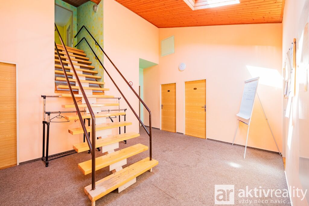 Dům je částečně podsklepený a v suterénu cca 70m2 se nachází kotelna, uhelna a sklad. Přízemí je o celkové ploše cca 265m2. V prvním poschodí najdete šest pokojů s vlastní koupelnou a WC a na druhém poschodí jsou další dva samostatné pokoje s koupelnou a WC .