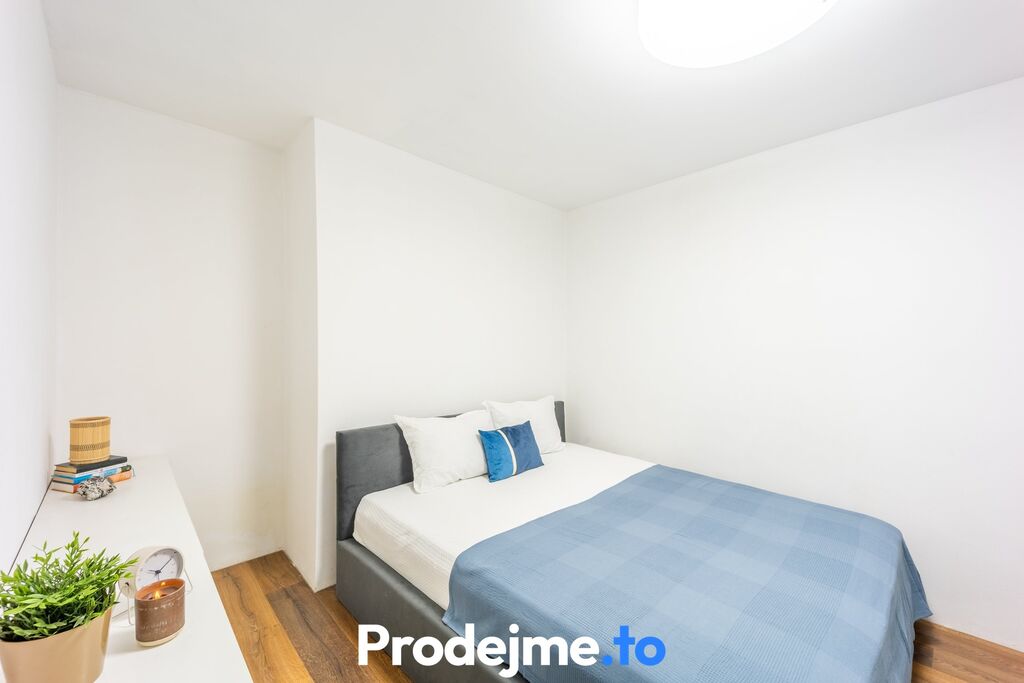 Dětský pokoj disponuje velkou šatní skříní, vyvýšenou postelí s praktickým úložným řešením a psacím stolem. V ložnici najdete manželskou postel a dlouhou komodu. Další úložné prostory jsou k dispozici na chodbě, kde se nachází dvě komody a výklenek využitý jako technická místnost.