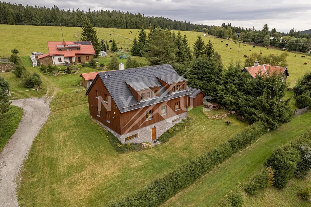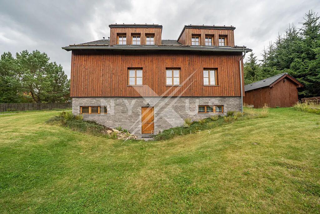 Na Kvildě, nejvýše položené obci v České republice, je k prodeji horský rodinný dům s celkovou užitnou plochou 306 m², který disponuje čtyřmi samostatnými apartmány, saunou a zázemím pro celoroční bydlení i rekreaci. Dům zkolaudovaný v roce 2012 stojí na pozemku o velikosti 598 m², z toho zahrada tvoří 443 m², a nachází se v jedné z nejmalebnějších částí Šumavy, kde se snoubí klid horské přírody s komfortem moderního zázemí.