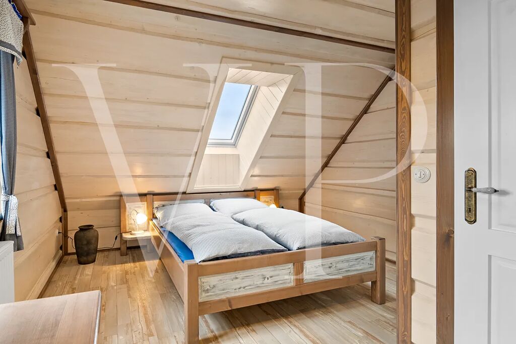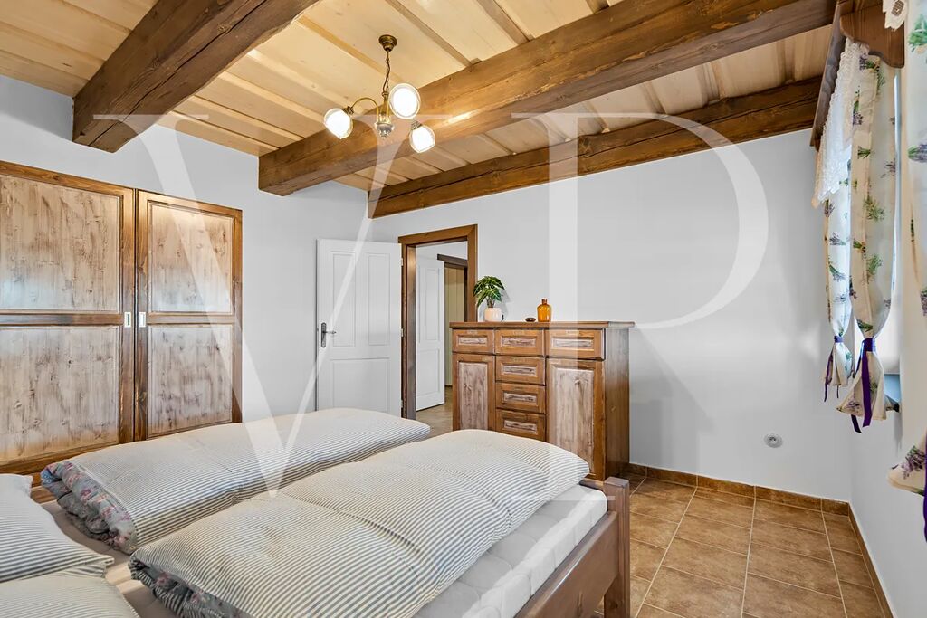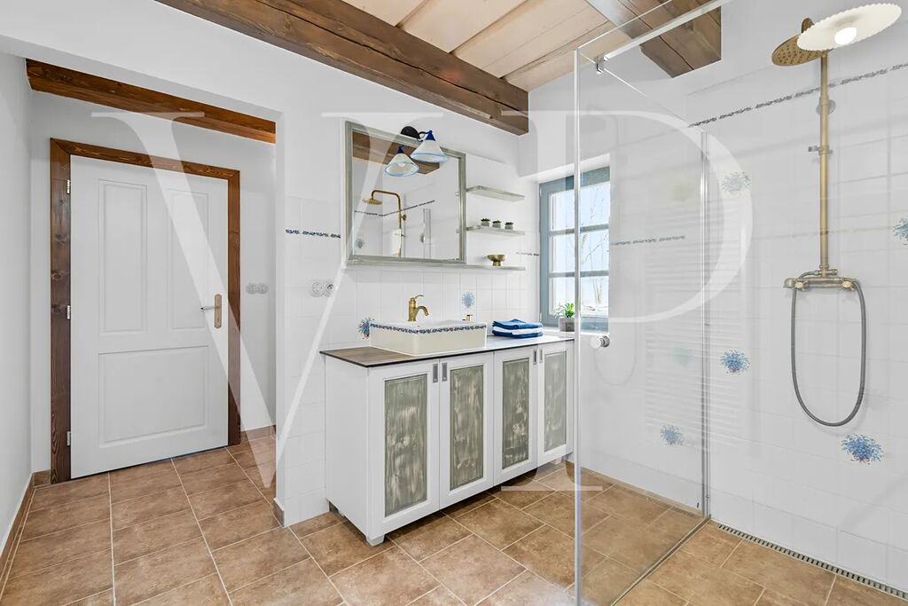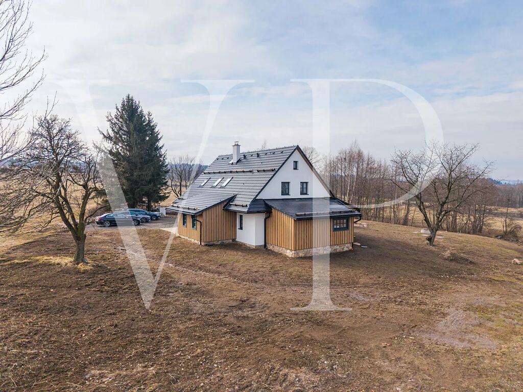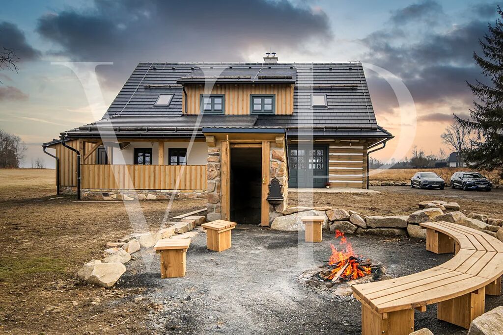 Chalupa s dispozicí 5+kk, třemi koupelnami, relaxační zónou s finskou saunou a krytou terasou má užitnou plochu 211 m². Nachází se na úpatí Vysočiny v malebném prostředí obklopené vesnickými staveními na krásném rovinatém pozemku o velikosti 7 336 m².