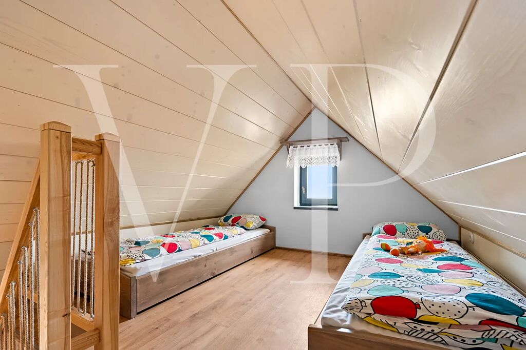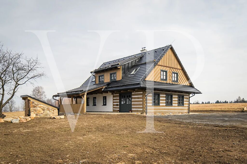 Dovoluji si Vám nabídnout prodej nové pohádkové poloroubenky, jejíž estetika odráží tradiční poctivé řemeslo, eleganci přírodních materiálů a moderní design.