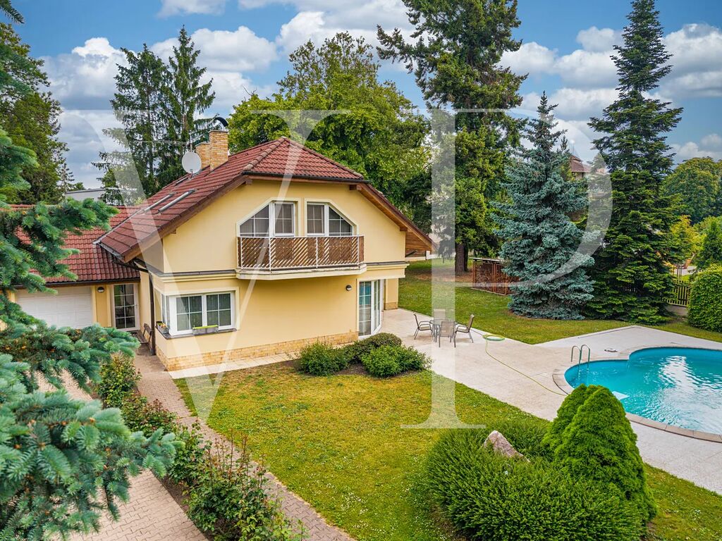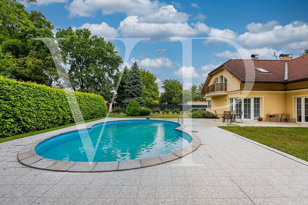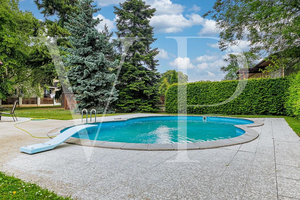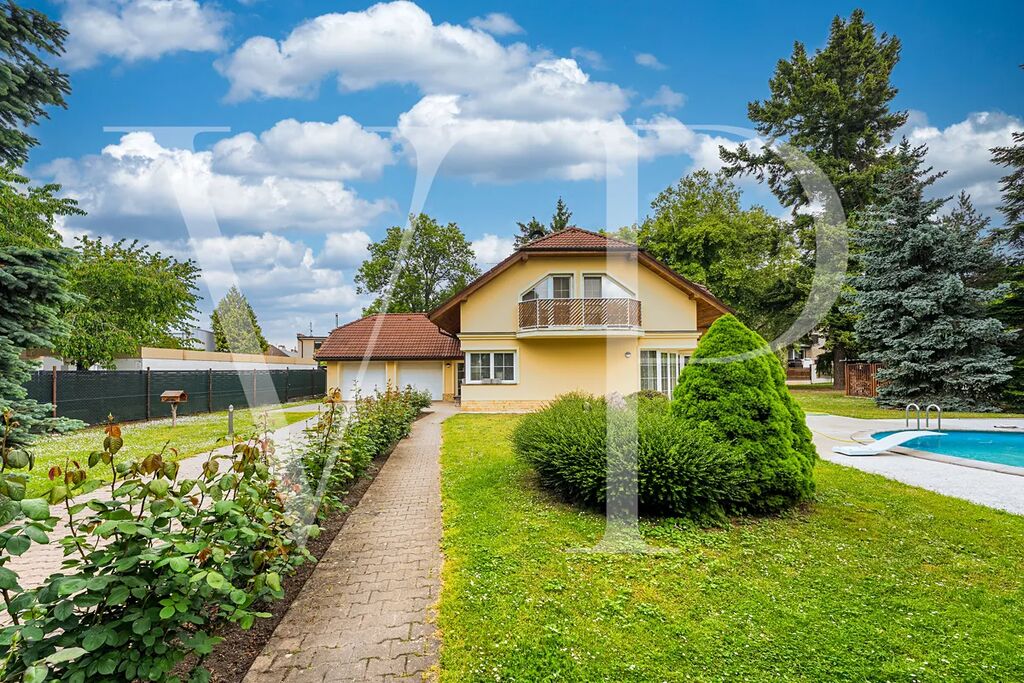 Oplocený pozemek, zabezpečovací systém, prostorná dvoj garáž s dálkovým ovládáním a soukromým vstupem do domu, bazén, zahradní domek, pergola s udírnou jsou pro tento dům samozřejmost.
