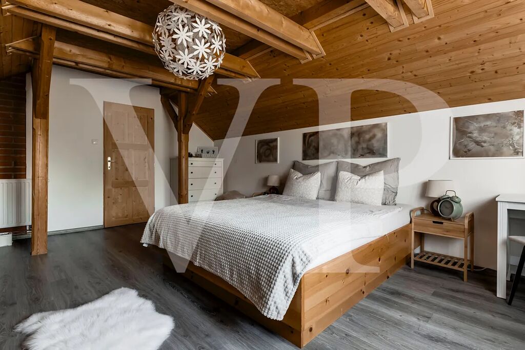 Dvoupatrová chalupa s falešným roubením o zastavěné ploše 197 m2 byla v roce 2022 od základu velmi vkusně zrekonstruována a udržovaná okrasná zahrada s krytou pergolou o ploše 274 m2 a její okolí nabízí maximální komfort a soukromí.