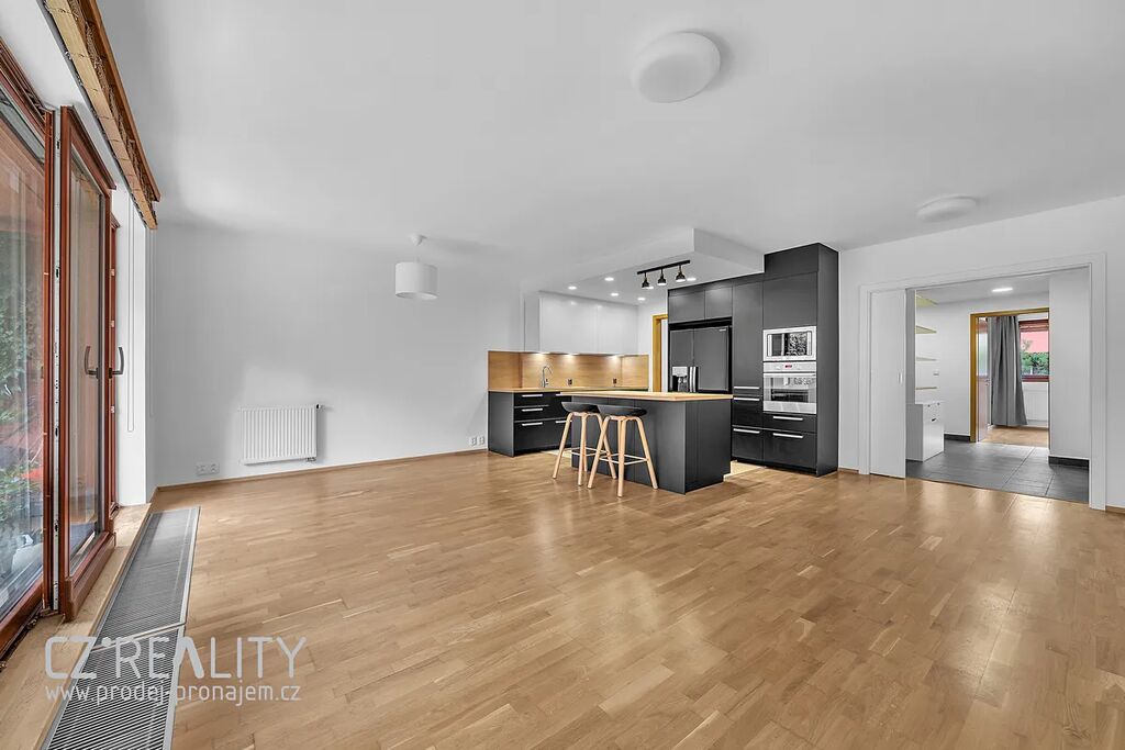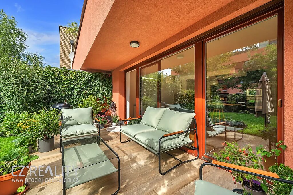 S užitnou plochou 94 m², velkou terasou a navazující zahradou o rozloze 57 m², nabízí tento byt netradiční životní prostor, který je ideální pro rodinu nebo jednotlivce hledající styl života s výhodou venkovního posezení a propojení obytného prostoru s přírodou.