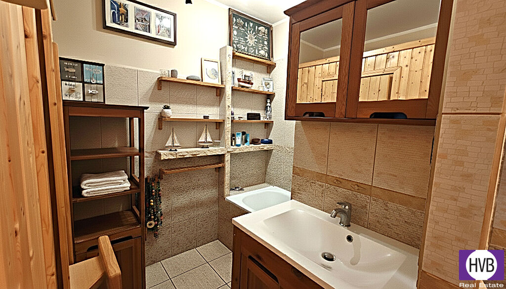Rekonstrukce se dotkla celého bytu s použitím vinylových podlah a keramické dlažby v koupelně, součástí rozlehlého bytu je komora, velké množství úložných prostor, v koupelně vybudována sauna, okna do ulice s předokenními roletami, lodžie doplněna posuvným zasklením, kamínkovou podlahou, vše s příjemným výhledem. Vytápění zajištěno centrálním dálkovým zdrojem.