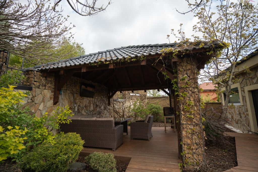 K příjemnému odpočinku poslouží zahrada s terasou, venkovním posezením a vířivkou, k dispozici je rovněž posilovna, vinný sklípek a altánek.