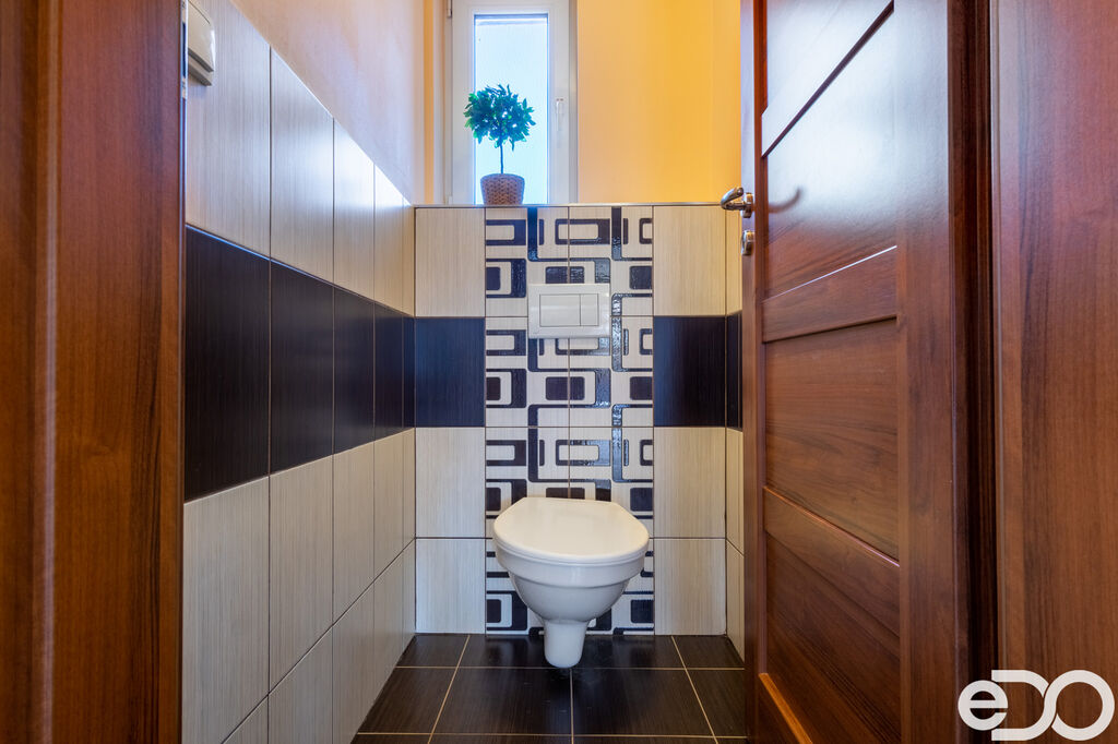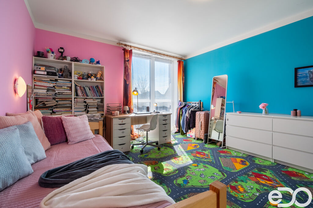 Patro – tři pokoje (ložnice, dětský pokoj, pracovna), velká světlá koupelna s vanou a WC, komora s výsuvným schodištěm na půdu.