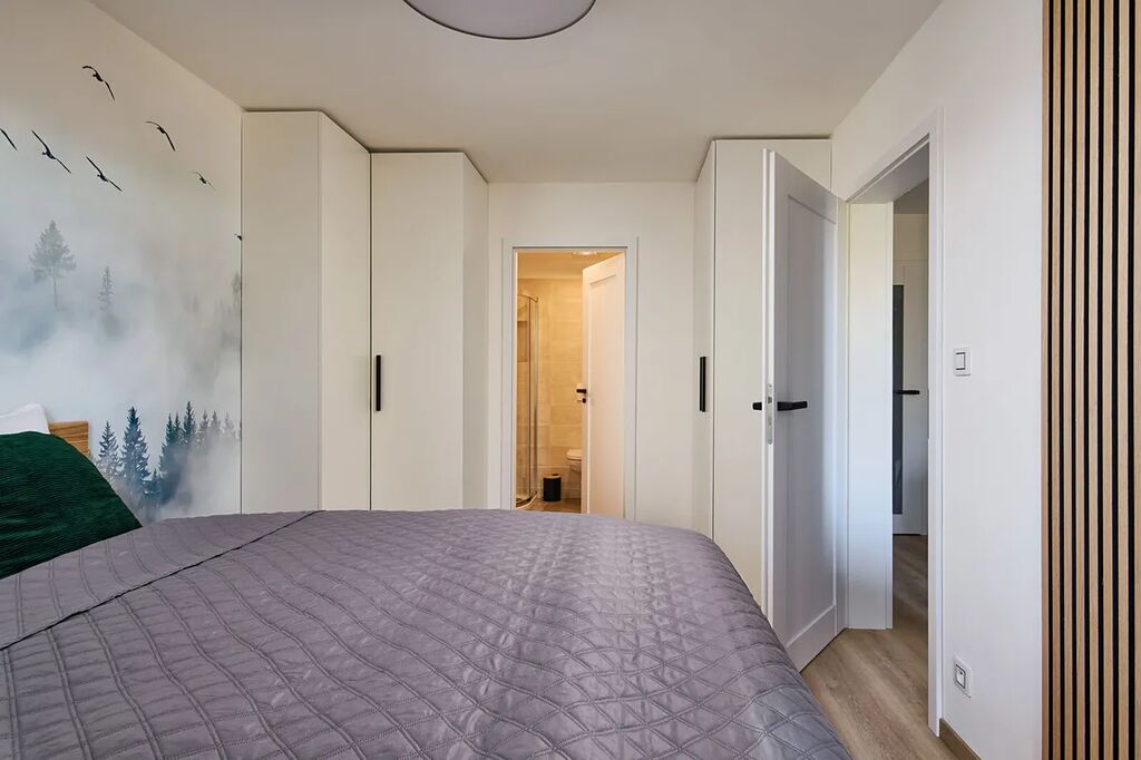 Všechny apartmány jsou zcela dokončeny, s hotovou koupelnou a podlahovými krytinami. Zbývá si vybrat z katalogu design zárubní a interiérových dveří. Styl vybavení interiéru je pak zcela již ve vašich rukou.