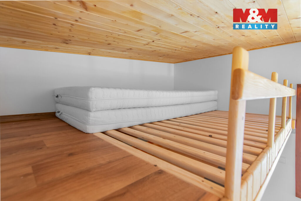 Nabízíme k prodeji kompaktní dům o dispozici 1+kk s užitnou plochou 21 m² a objemem vnitřního prostoru cca 55 m³. Konstrukci tvoří ocelová základna, KVH hranoly 240mm a 120mm, OSB opláštění a palubky (severský smrk). Zateplení tl. 12 cm minerální vata, zajišťuje nadstandardní tepelně-izolační vlastnosti. Vytápění: elektrické podlahové v koupelně + příprava na elektrické přímotopy v obytné části. Podlahy: v koupelně dlažba s elektrickým vyhříváním, v obytné části a na chodbě PVC. Dům je vybaven kompletní elektroinstalací a vodoinstalací: elektrický bojler, dřez, sprchový kout, WC, umyvadlo, příprava na pračku. Dřevo je ošetřeno proti vlhkosti, houbám a plísním; spodní část chrání asfaltový nátěr proti vzlínání zemní vlhkosti. Vestavěné patro na spaní (loft) má rozměry 170 × 270 cm. Venkovní výbava zahrnuje el. zásuvku a přípravu na venkovní osvětlení Dům je připraven k okamžitému užívání; stačí jej napojit na inženýrské sítě.