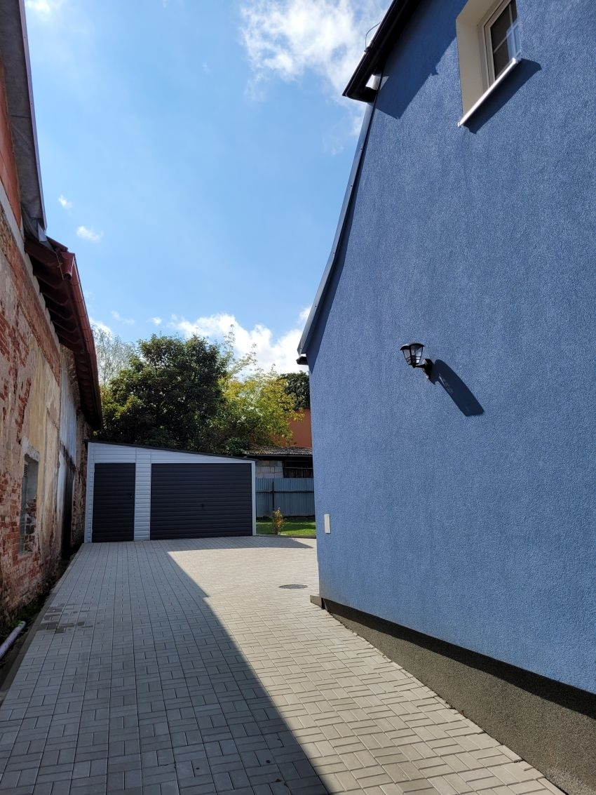 Součástí je také prefabrikovaná garáž z roku 2025 s nabíječkou pro elektromobily.