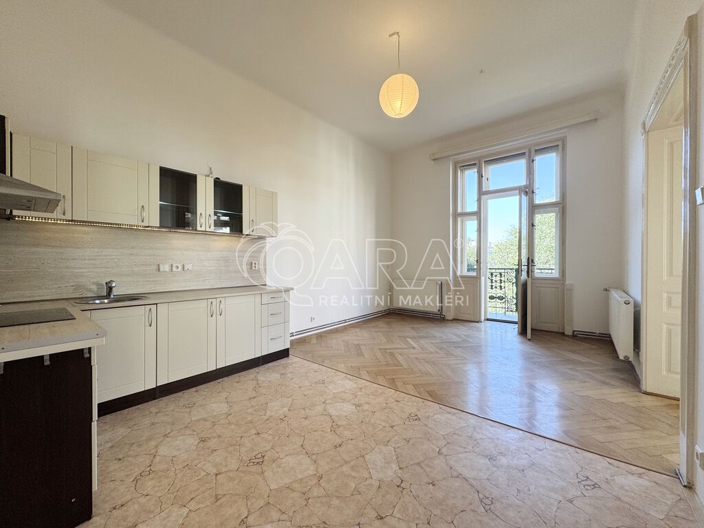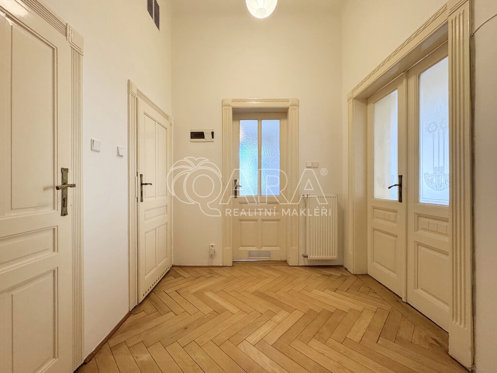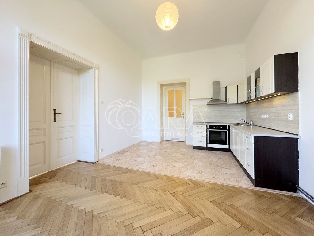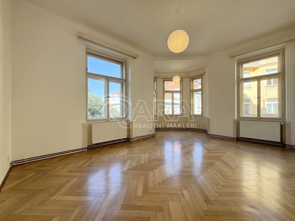 Zprostředkuji Vám pronájem krásného, světlého bytu dispozice 3+kk, s příjemným výhledem do parku, který se nachází ve Zborovské ulici, na úrovni náměstí 14.října, v pražské čtvrti Smíchov. K bytu o výměře 98 m2 náleží 2 menší balkóny, jeden s výhledem na náměstí 14.října, druhý do boční ulice. Středový (rohový pokoj) je přístupný z ložnice, nebo z obytné kuchyně. V bytě je rohová kuchyňská linka, vybavená spotřebiči: elektrickou varnou deskou, pečící troubou a digestoří. V případě zájmu majitel dodá lednicí s mrazákem. Koupelna je zařízena rohovou vanou, umyvadlem s umyvadlovou skříňkou a topným žebříkem. WC umístěno samostatně. Vytápění bytu/ohřev vody zajišťuje plynový kotel umístěný v koupelně, kde je rovněž přípojka na pračku. Pračku majitel rovněž může zajistit. Okna bytu jsou dřevěná špaletová, budou nově osazeny žaluziemi. V bytě jsou dubové parkety, vyjma kuchyňské části, kde je PVC, v koupelně a na WC je dlažba. Byt se nachází v 2.patře činžovního domu s výtahem. K bytu nenáleží sklep. Výborná dopravní dostupnost: zastávka tramvají minuta chůze, stanice metra Anděl (trasa B) 6 minut pěšky. Skvělá občanská vybavenost: krásné prostředí u Vltavy, Náplavka 5 minut pěšky, nedaleko oblíbený park Kampa, Petřín, Dětský ostrov. Obchodní centrum Nový Smíchov (kino, Tesco, obchody, služby, fitness) na druhé straně náměstí, PENNY supermarket u domu, v okolí mnoho restaurací, barů a kaváren. Byt je vhodný pro pár nebo pro rodinu k dlouhodobému pronájmu (min. 12 měsíců). Měsíční náklady: nájem + služby 830,-Kč/osoba + přepis plynu a el. energie na nájemce. Jistota ve výši 56.000 Kč + odměna zprostředkovatele. Prohlídky možné po dohodě, k nastěhování od 15.10.2025 nebo od 1.11.2025.