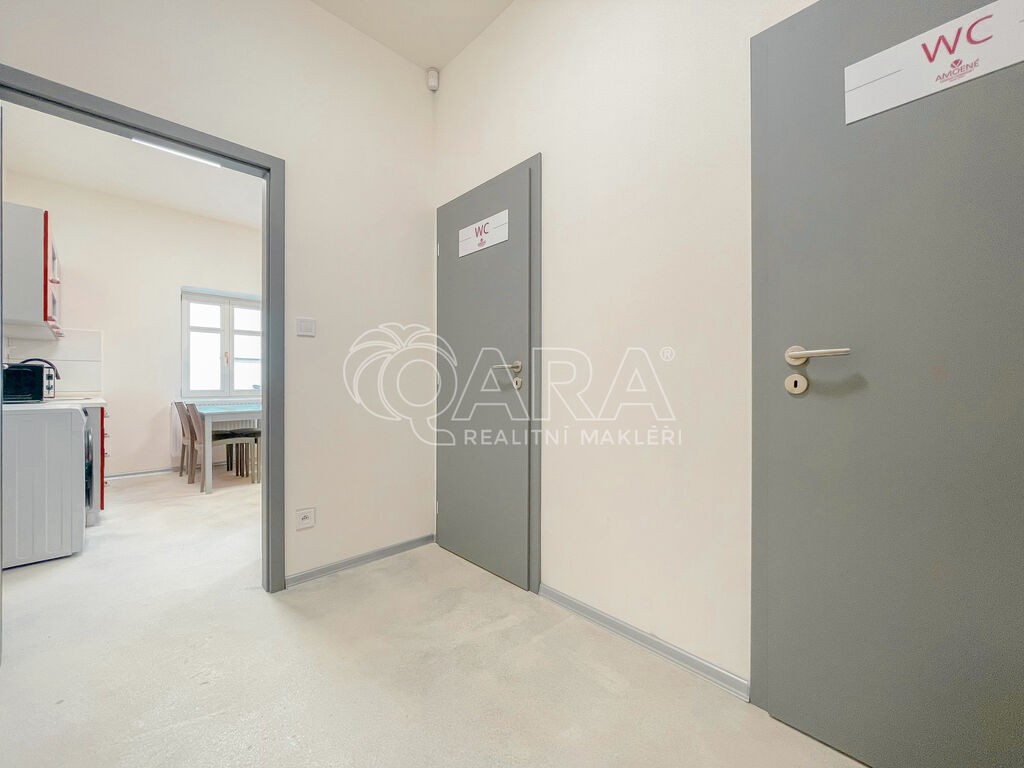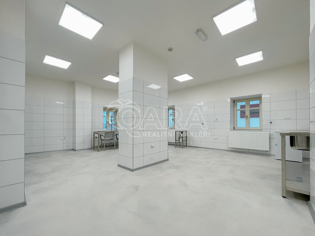 Všechno je nové, čisté a připravené k okamžitému provozu. Výhodou je i to, že se nacházíte v centru, kde je pravidelný pohyb lidí, což oceníte, pokud plánujete i prodejní část.