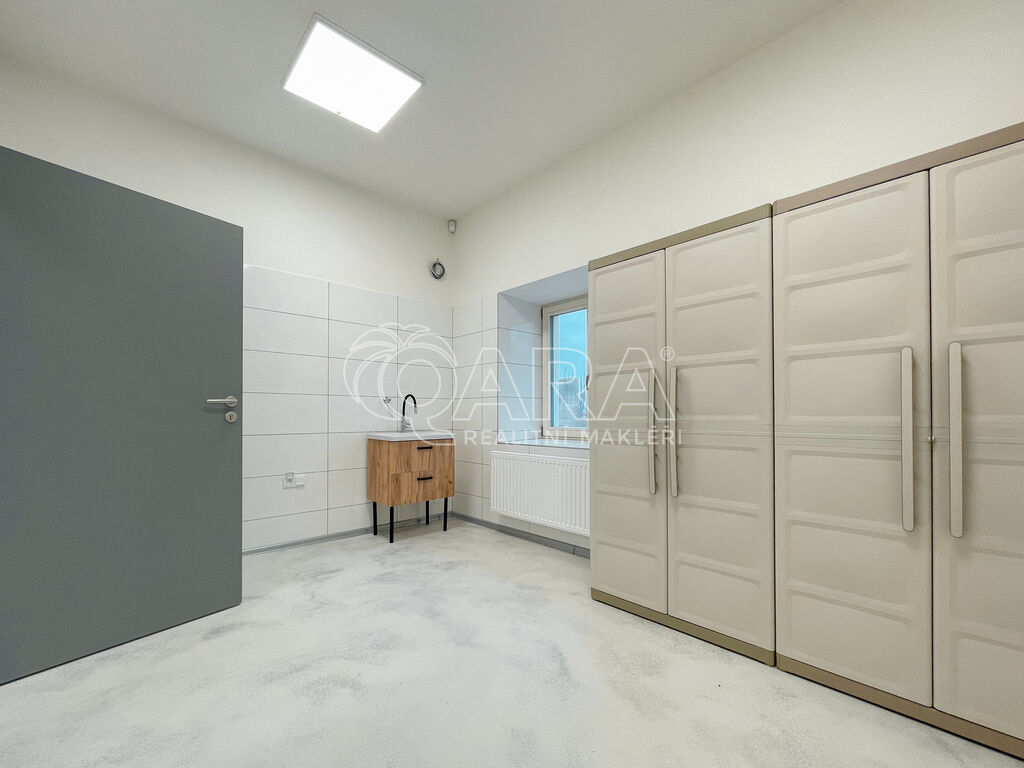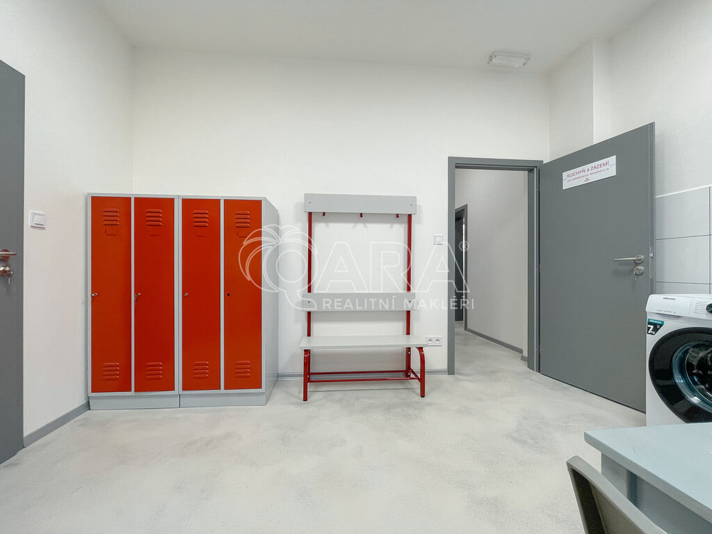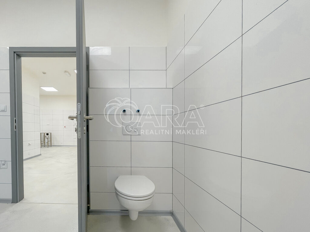 Celý prostor je rozdělený do několika částí. Hlavní výrobní místnost má 42 m². Dále jsou tu dvě skladovací místnosti, zádveří s venkovním vchodem a kompletní zázemí s kuchyňkou, jídelnou, toaletami a sprchami. Nechybí ani dotykový zvonek s kamerou pro pohodlné a bezpečné přijetí návštěv nebo zákazníků.