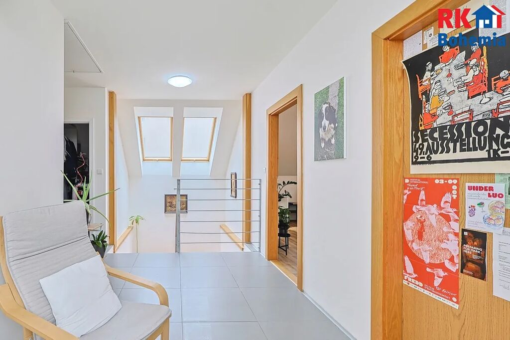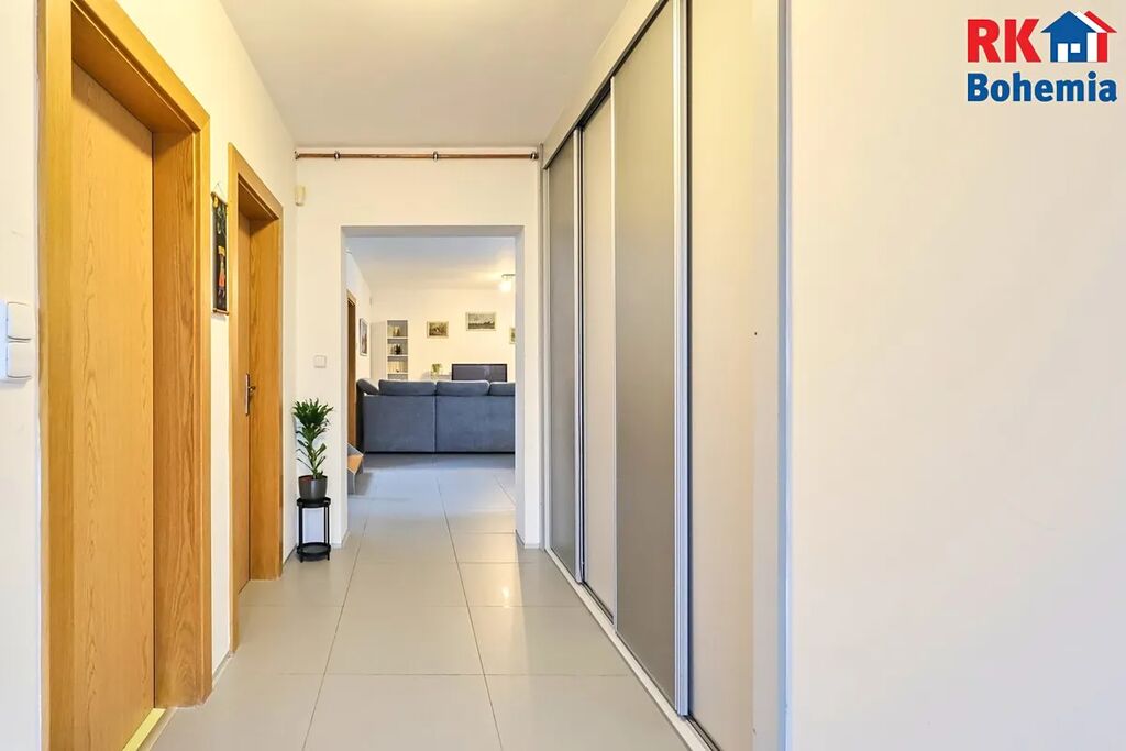 Dům je v dispozici 5+1, přičemž v 1.NP se nachází obývací pokoj (37,8 m2) se vstupem na terasu, samostatná prostorná kuchyně (9,6 m2) se spíží (1,15 m2), pracovna (10,8 m2), technická místnost (5,6 m2), koupelna s WC (cca 4,9 m2) a předsíň (6,8 m2). Ve 2.NP se nachází 3 pokoje (16 m2, 15,92 m2, 15,92 m2), koupelna s WC (9,92 m2), šatna (3,85 m2) a prostorná chodba (12,73 m2) využitelná např. jako pracovna.