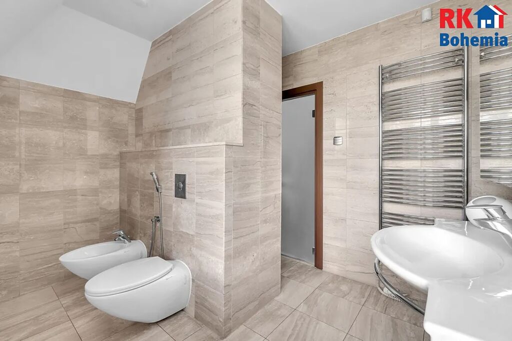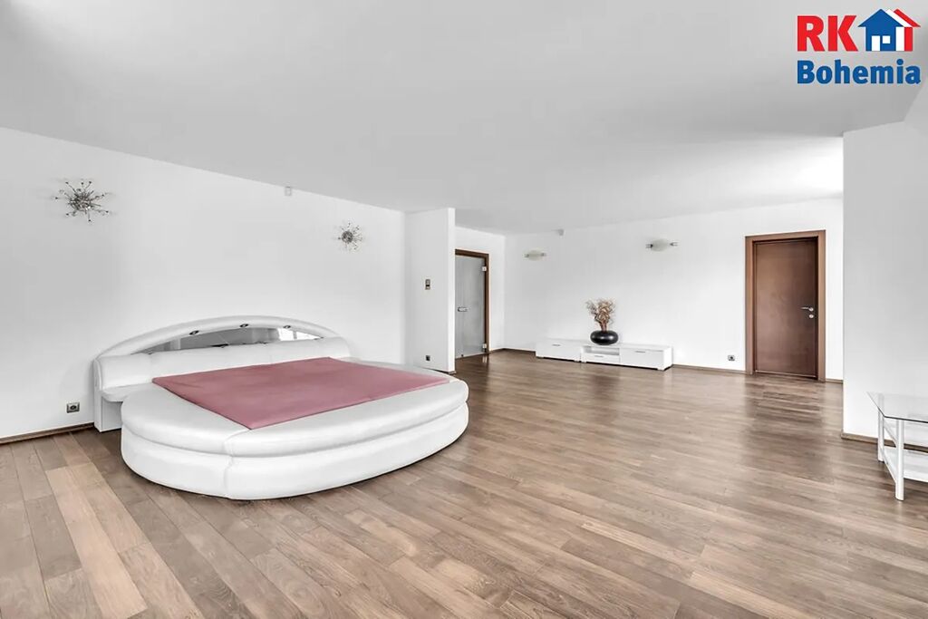 Bonusem je velmi citlivě upravená zahrada ze zavlažováním, se vzrostlými stromy a s travnatou plochou na heliport či tenisové kurty. Pozemek s vyhřívaným krytým bazénem a jezírkem velmi dobře doplňuje výjimečnost samotné stavby. Může sloužit pro rodinnou relaxaci a odpočinek a rovněž dokáže nabídnout potenciál v případě komerčního využití.