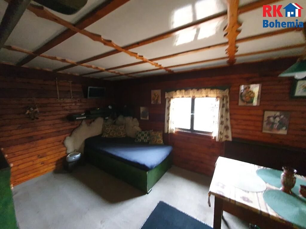 Dispozice: veranda, obytná místnost s kuchyňským koutem, ložnice, ze zahrady samostatný vchod do koupelny s vanou a toaletou a malá teráska s posezením. Na parcele zahradní domek s vnitřním sezením. Prodej včetně veškerého zařízení a vybavení. Na pozemku udržovaná okrasná zahrada, vzrostlé stromy. Vytápění - tuhá paliva, alternativa elektrický radiátor, teplá voda - průtokový ohřívač se zásobníkem. IS - elektřina 220/380V, veřejný vodovod, kanalizace řešena jímkou. K dispozici dokumentace stavby.