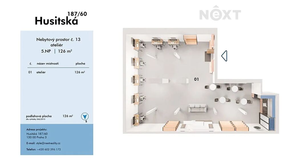 Vážení klienti, ve výhradním zastoupení, si vám dovolujeme nabídnout jedinečnou příležitost ke koupi, a to půdní prostor v projektu Husitská 60 v samotném srdci Žižkova.