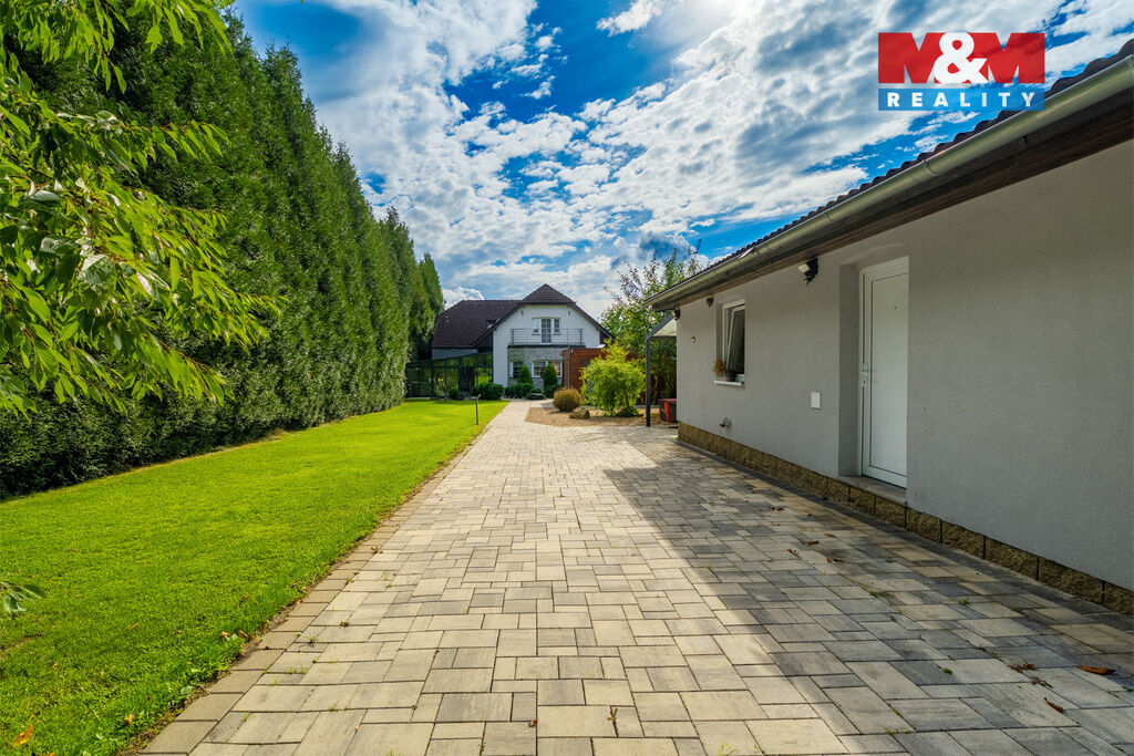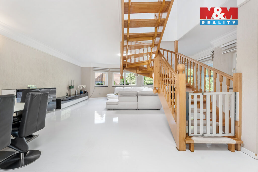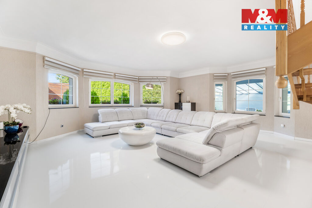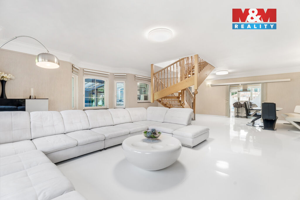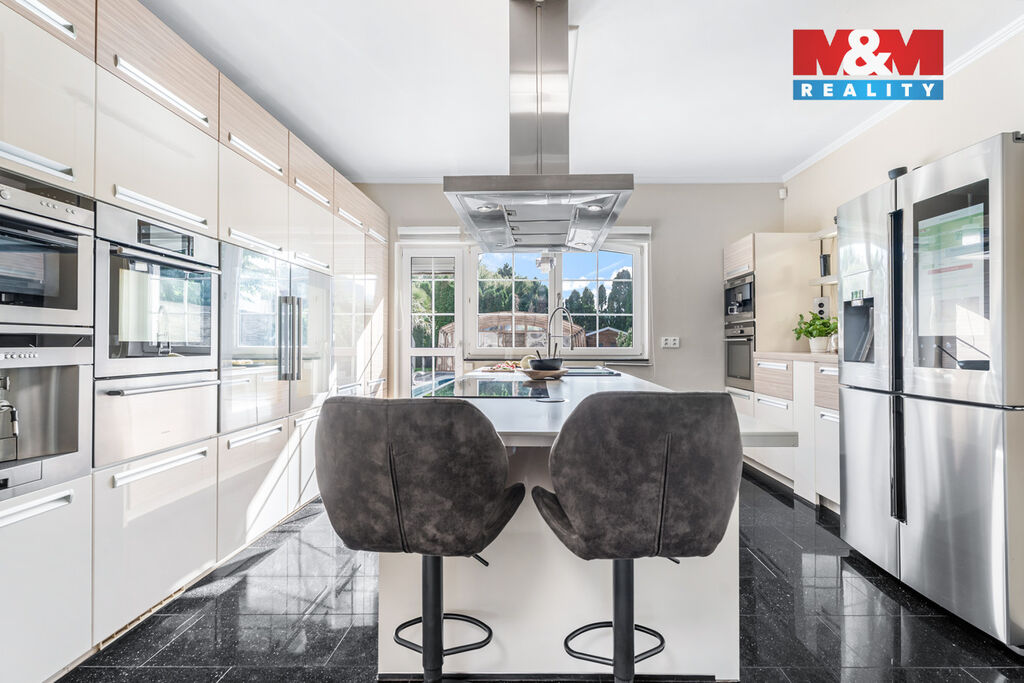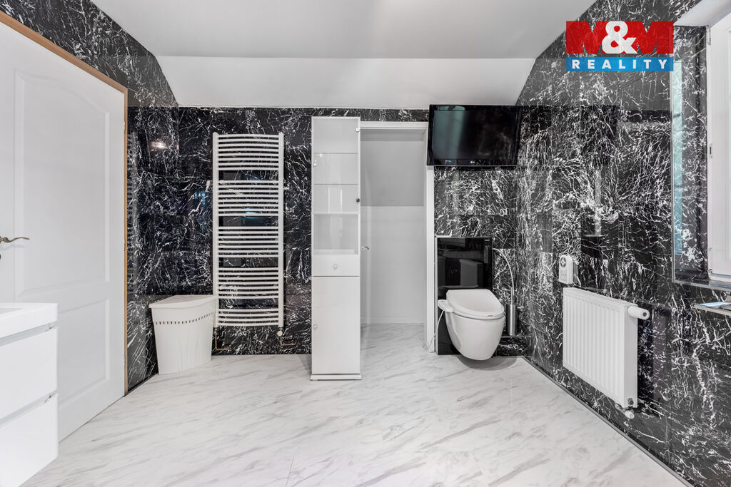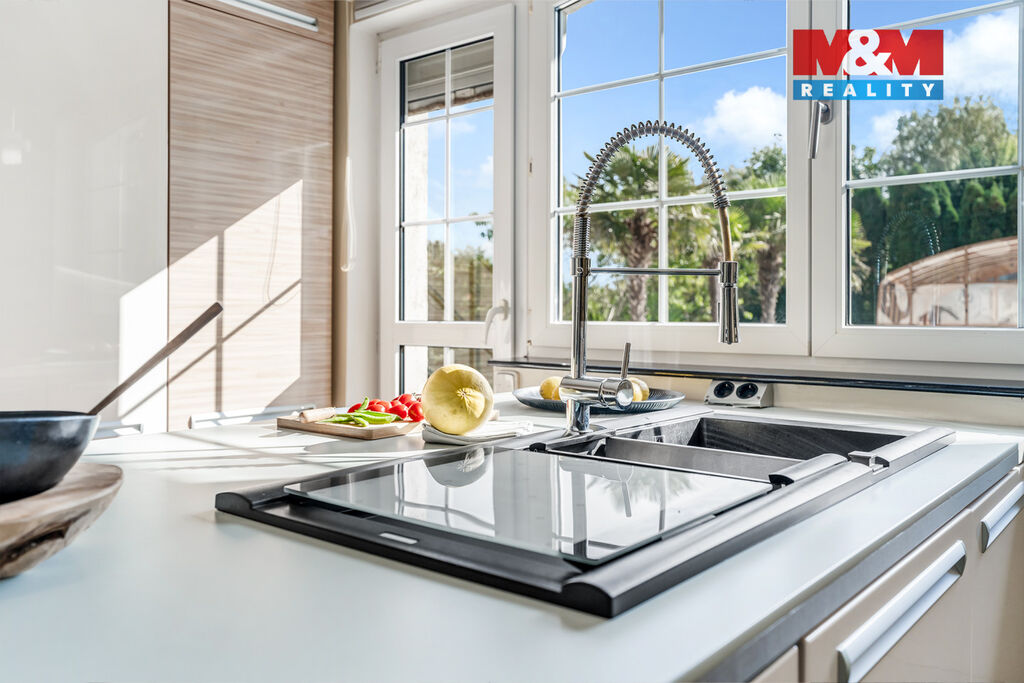 K prodeji nabízíme výjimečný rodinný dům 5+1 v Děčíně, ul. Veveří – část Václavov, který osloví náročné zájemce hledající nadstandardní bydlení s maximálním soukromím. Dům nabízí velkorysý obytný prostor s důrazem na komfort a moderní technologie. Krytý bazén 10×4 m lze díky tepelnému čerpadlu a hliníkovému zastřešení využívat celoročně, zadní terasa je osazena elektrickými roletami s LED podsvícením. V přízemí se nachází prostorný obývací pokoj s jídelnou a kuchyní se spotřebiči značek Siemens a Miele, pracovna a koupelna s designovou vanou z litého černého mramoru a sprchovým koutem EAGO. Podlahy z přírodního kamene jsou zde vyhřívané. V patře jsou tři pokoje, další komfortní koupelna se sprchou a klimatizace, která zajišťuje pohodlí v letních měsících. K zázemí náleží zasklená pergola s klimatizací, garáž a dvě samostatné dřevostavby. Bezpečnostní dveře na otisk prstu, solární elektrárna s battery boxem i celkové technické řešení podtrhují jedinečnost této nabídky v blízkosti centra