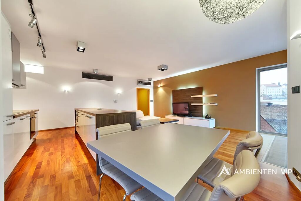 Byt lze pronajmout i jako kancelářské studio. Vhodné např. i pro firemní zaměstnance, kteří chtějí bydlet ve stejném komplexu a v blízkosti centra města.