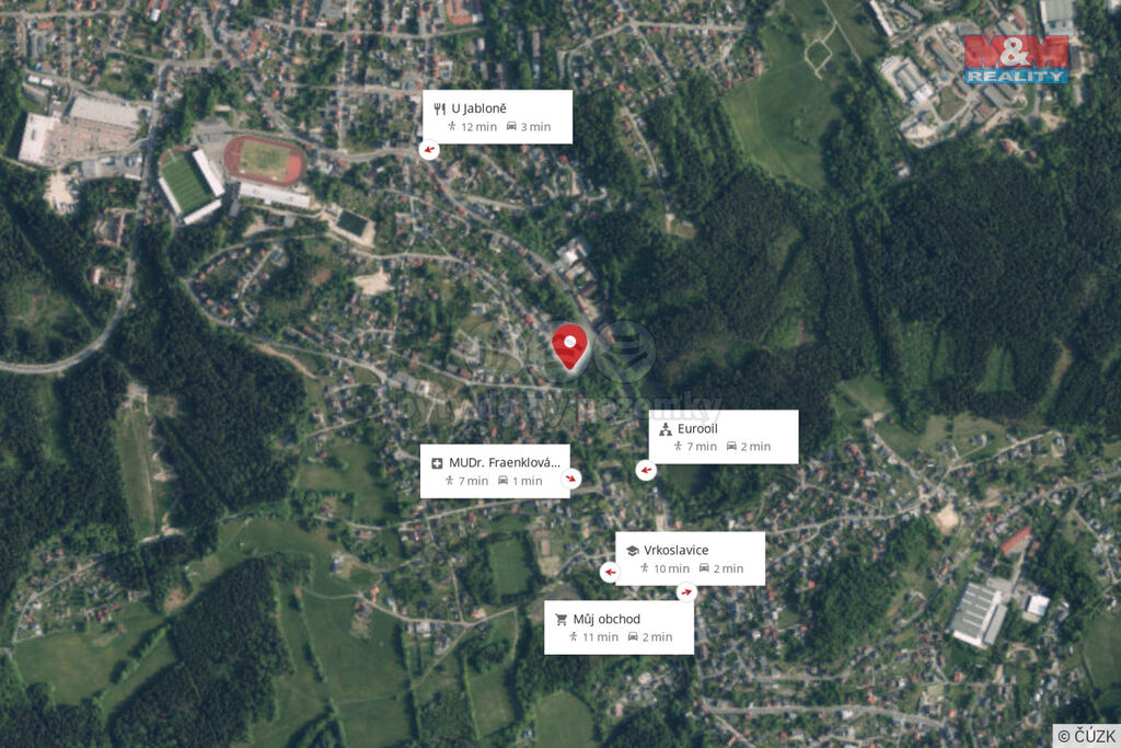 Lokalita nabízí klidné prostředí v těsné blízkosti přírody, přitom s plnou městskou vybaveností na dosah.