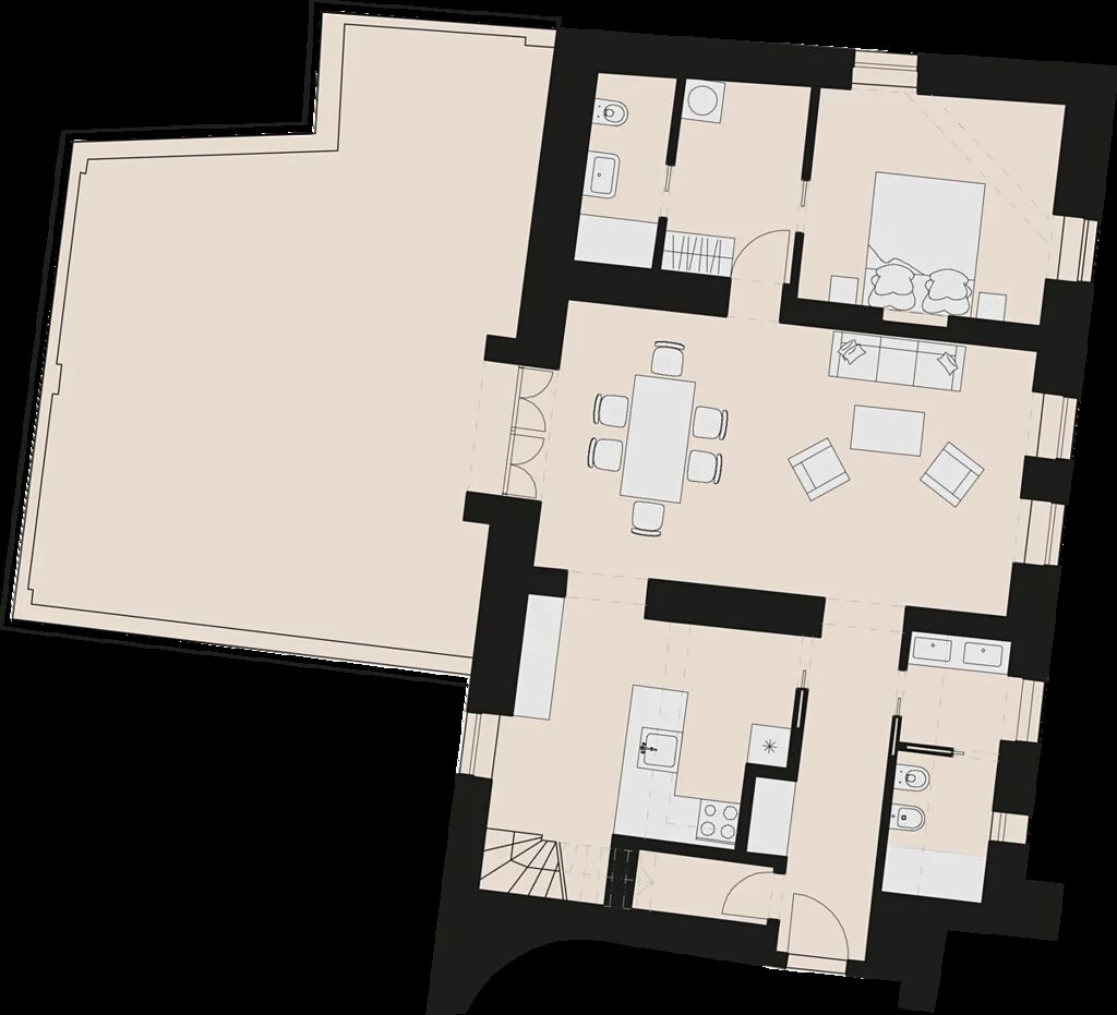 Tento byt je ideální volbou pro náročnější klientelu, která hledá reprezentativní a pohodlné bydlení s dostatkem prostoru a neopakovatelnou atmosférou přímo v centru Prahy.
